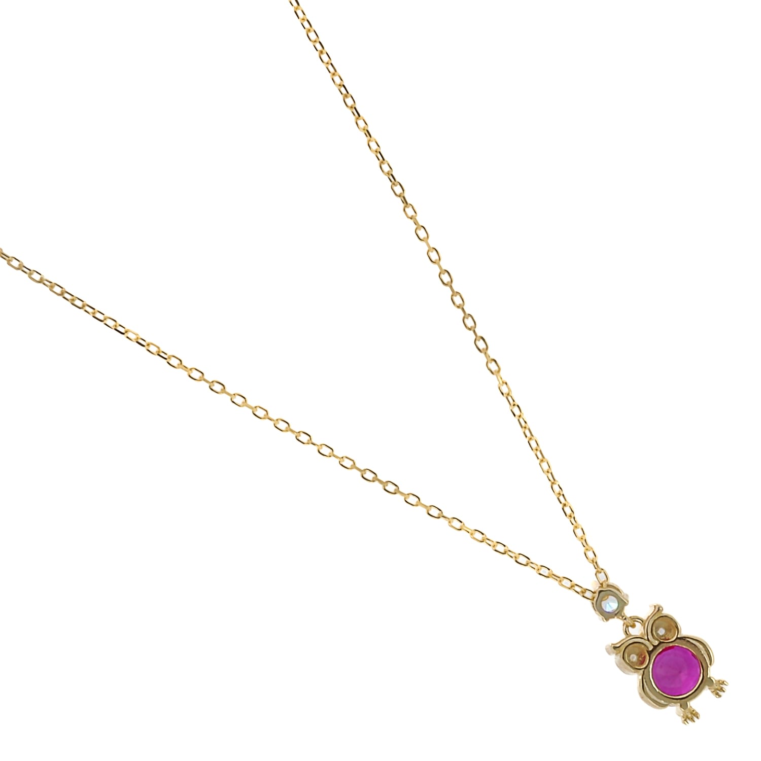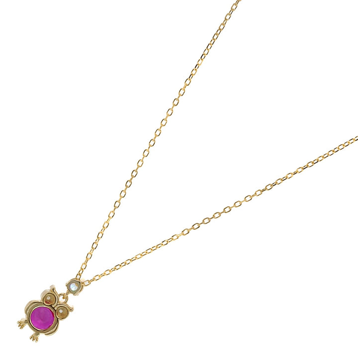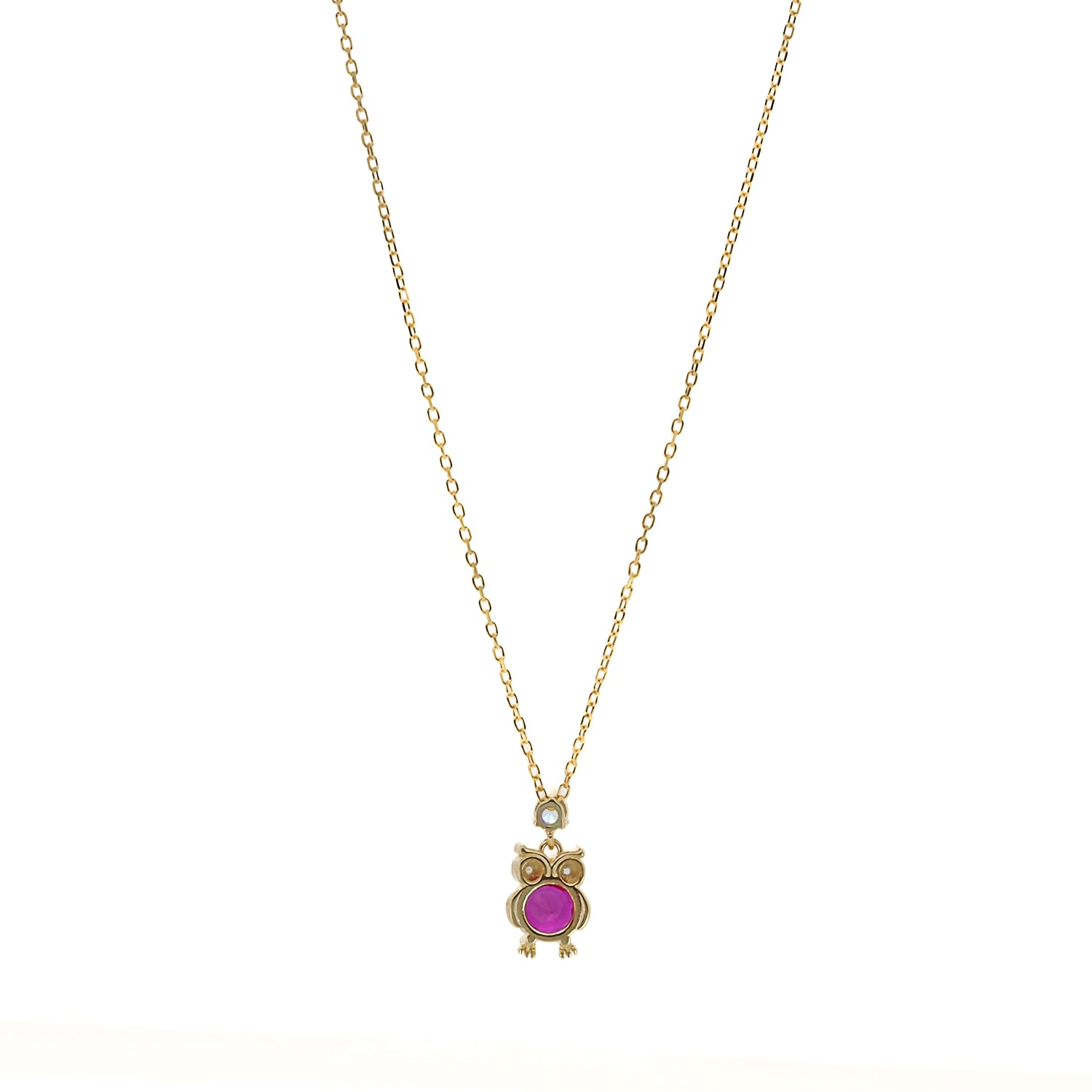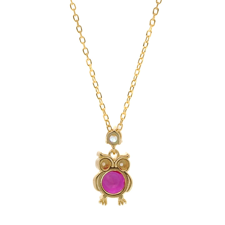This Ruby Owl Necklace by Ebru Jewelry is an exquisite piece that combines whimsical charm with luxurious elegance. The dainty owl pendant, adorned with a brilliant ruby stone and CZ diamond accents, symbolizes passion and inner strength. This necklace is an ideal choice for those who want to make a bold statement and embrace a beautiful, personal talisman.