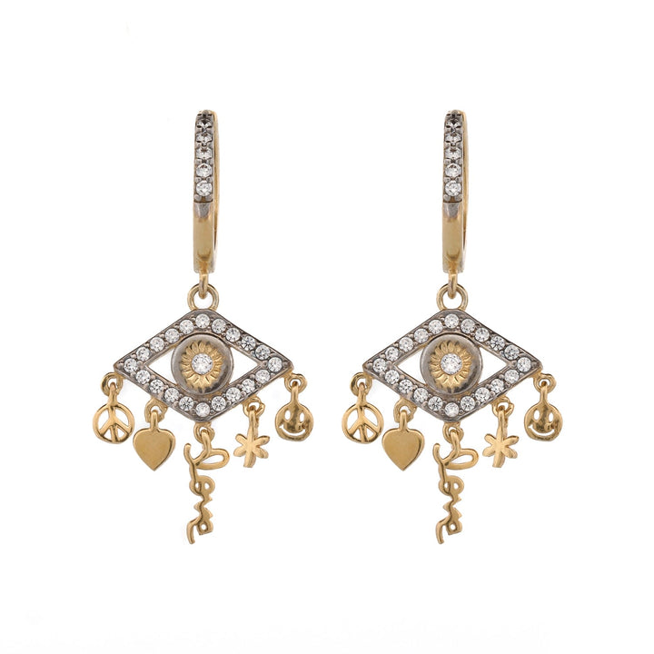 Peaceful Love Evil Eye Gold & Diamond Earrings - Gold