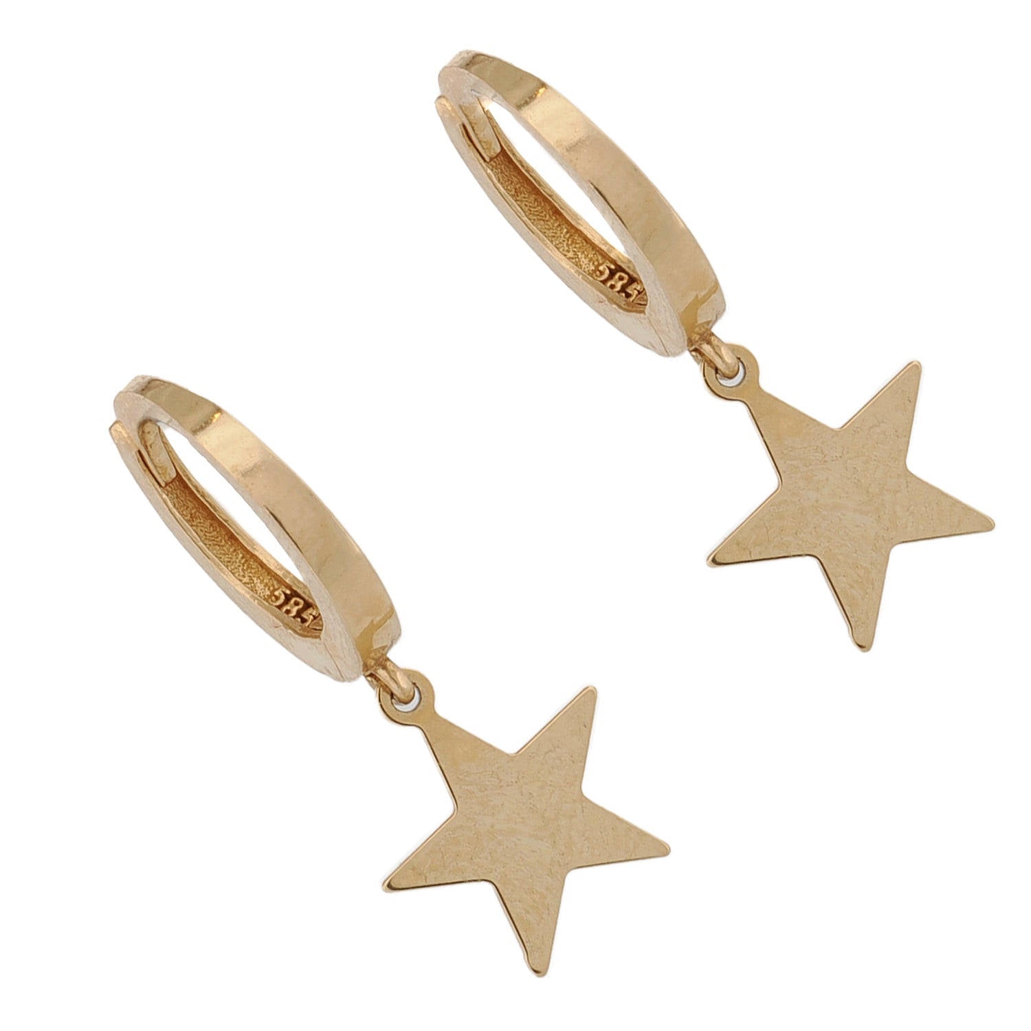 Celestial Grace Solid Gold Star Hoop Earrings - Gold