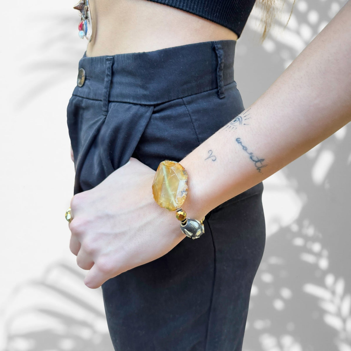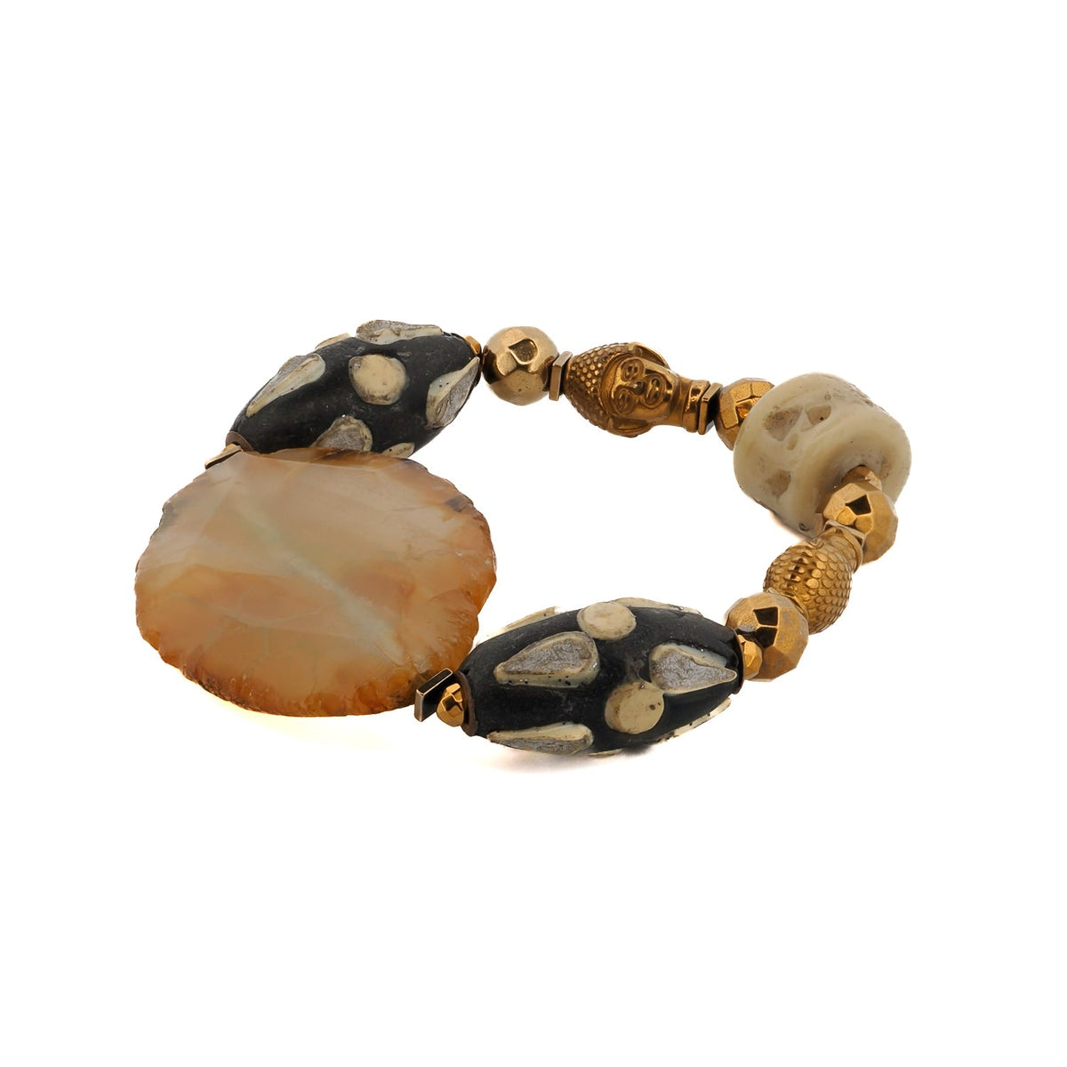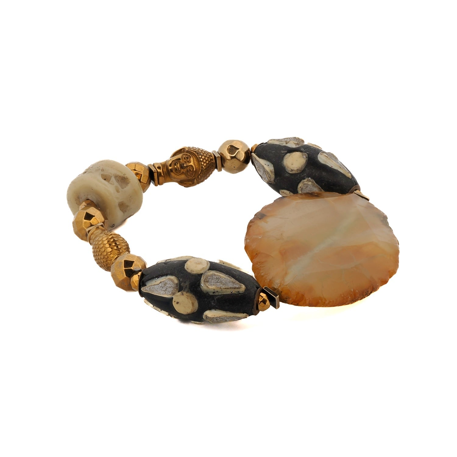 Chunky Agate Stone Gold Buddha Beaded Bracelet - Gold