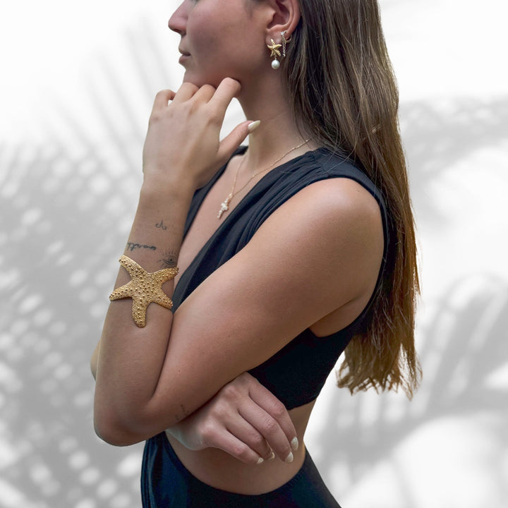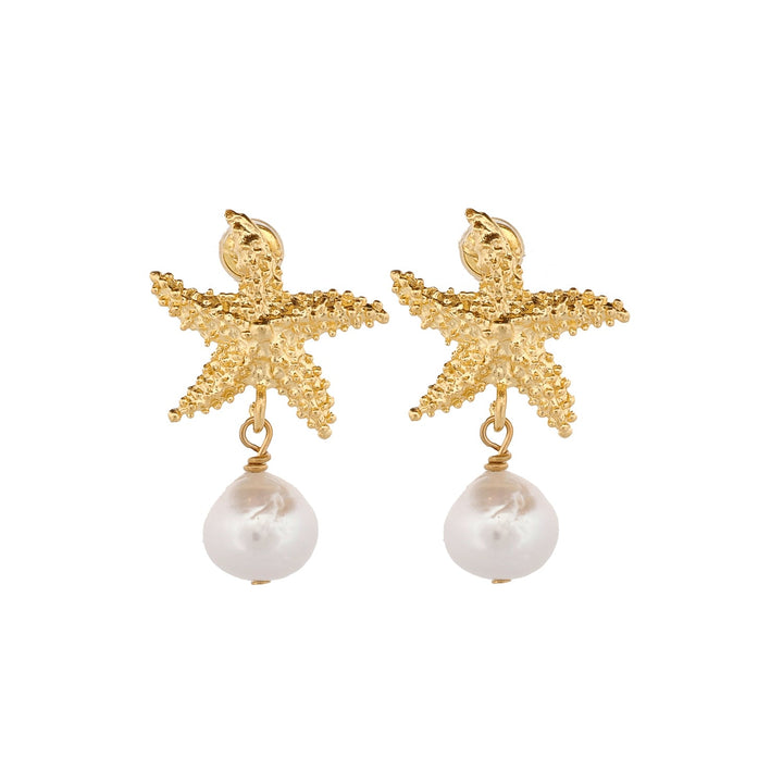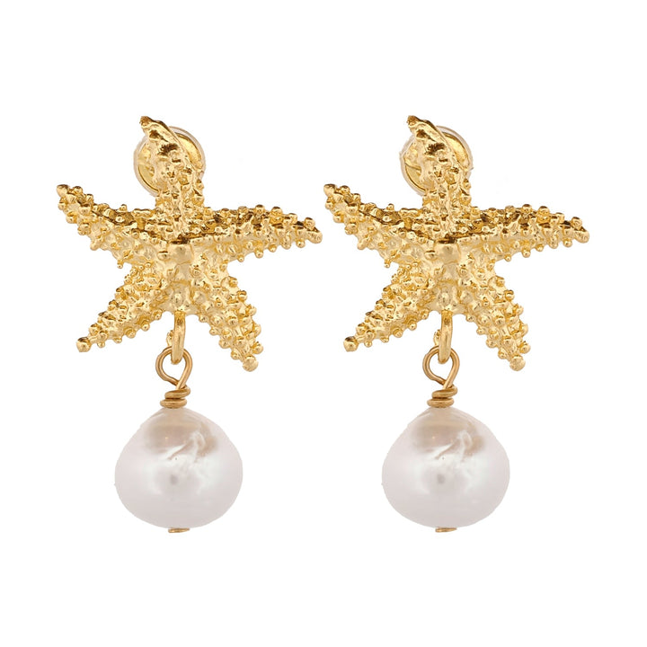 Majestic Gold Starfish & Pearl Earrings - Gold