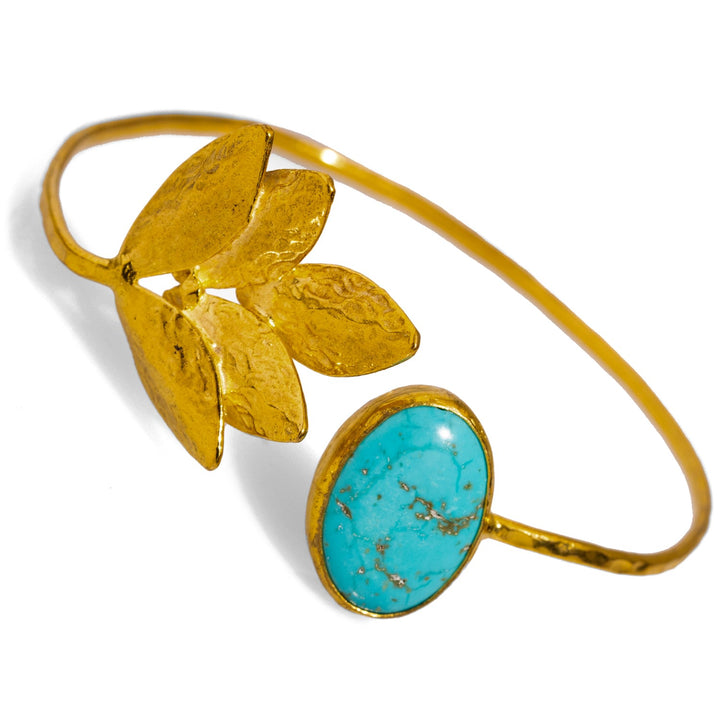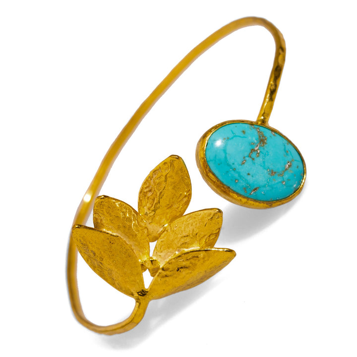 Cleopatra Turquoise & Gold Leaf Design Cuff Bracelet - Turquoise