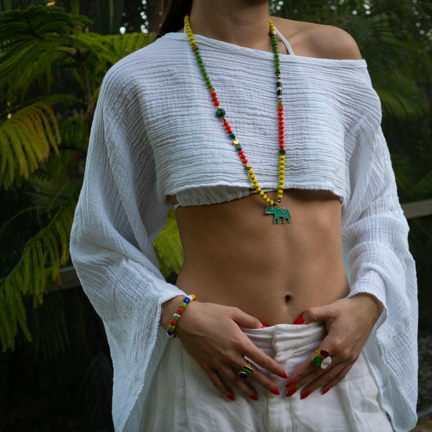Good Fortune Elephant Colorful Beaded Necklace - Multicolour