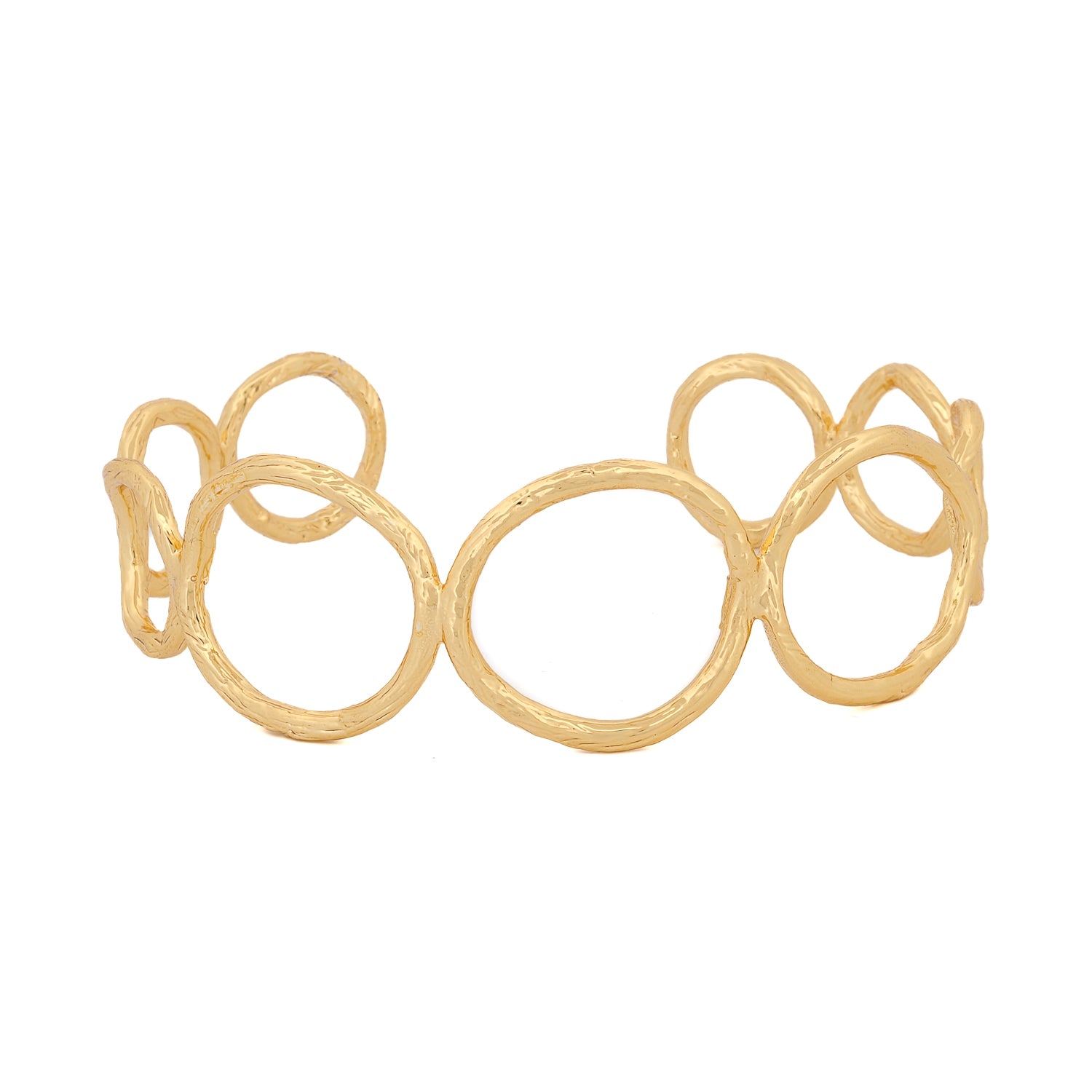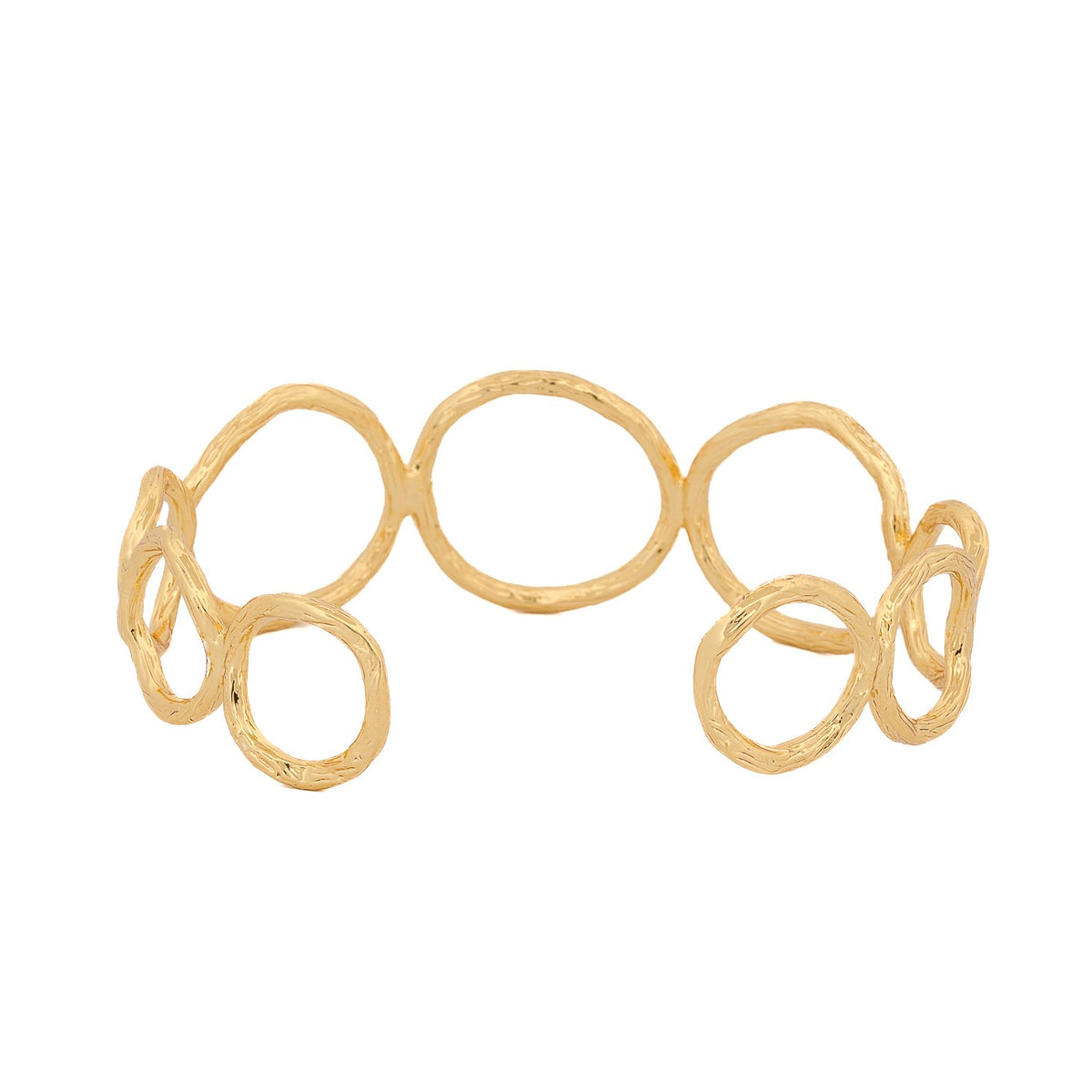 This adjustable cuff bracelet is crafted from high-quality brass and plated with 24-karat gold.