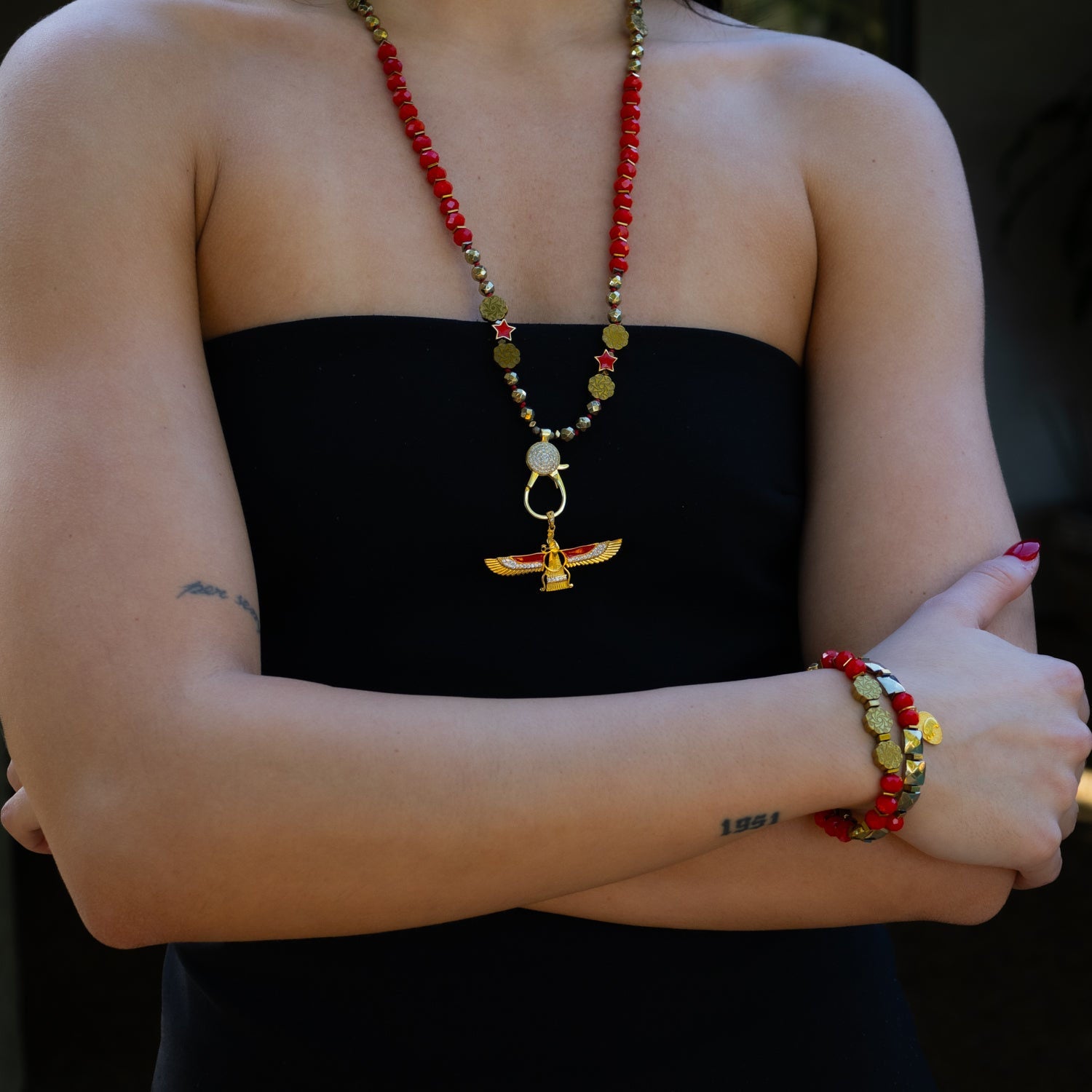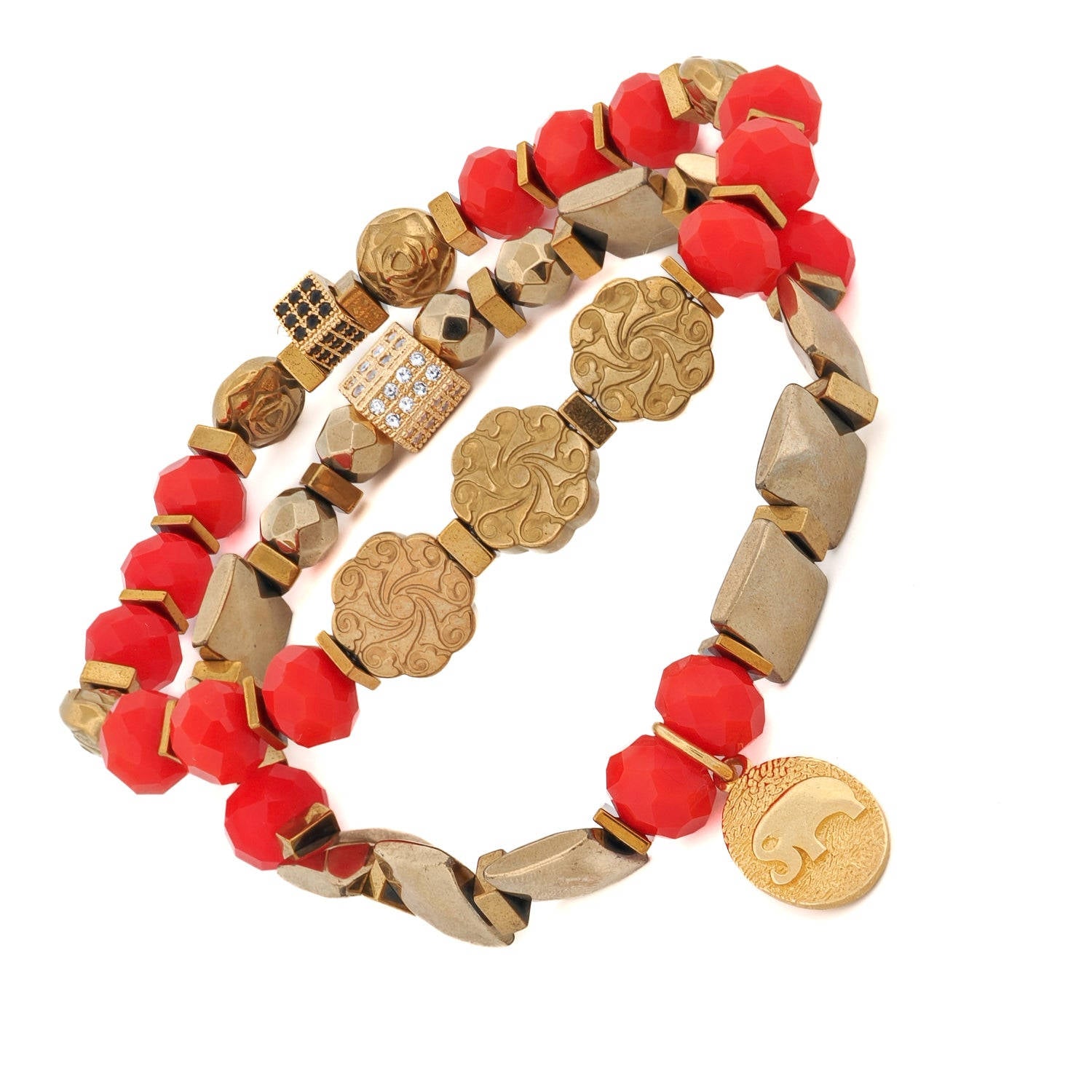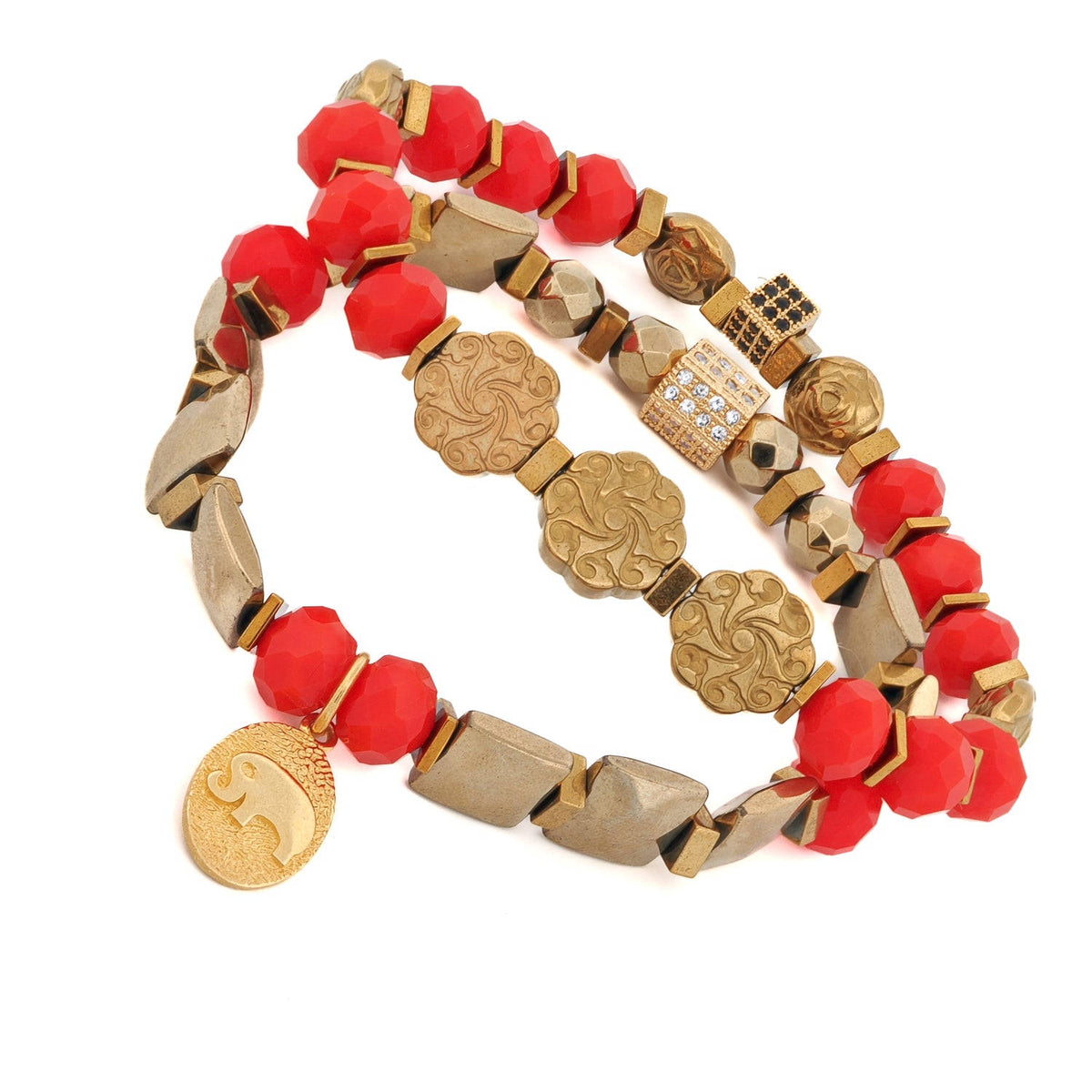Strength & Grace Red Energy Elephant Charm Bracelet Set - Red