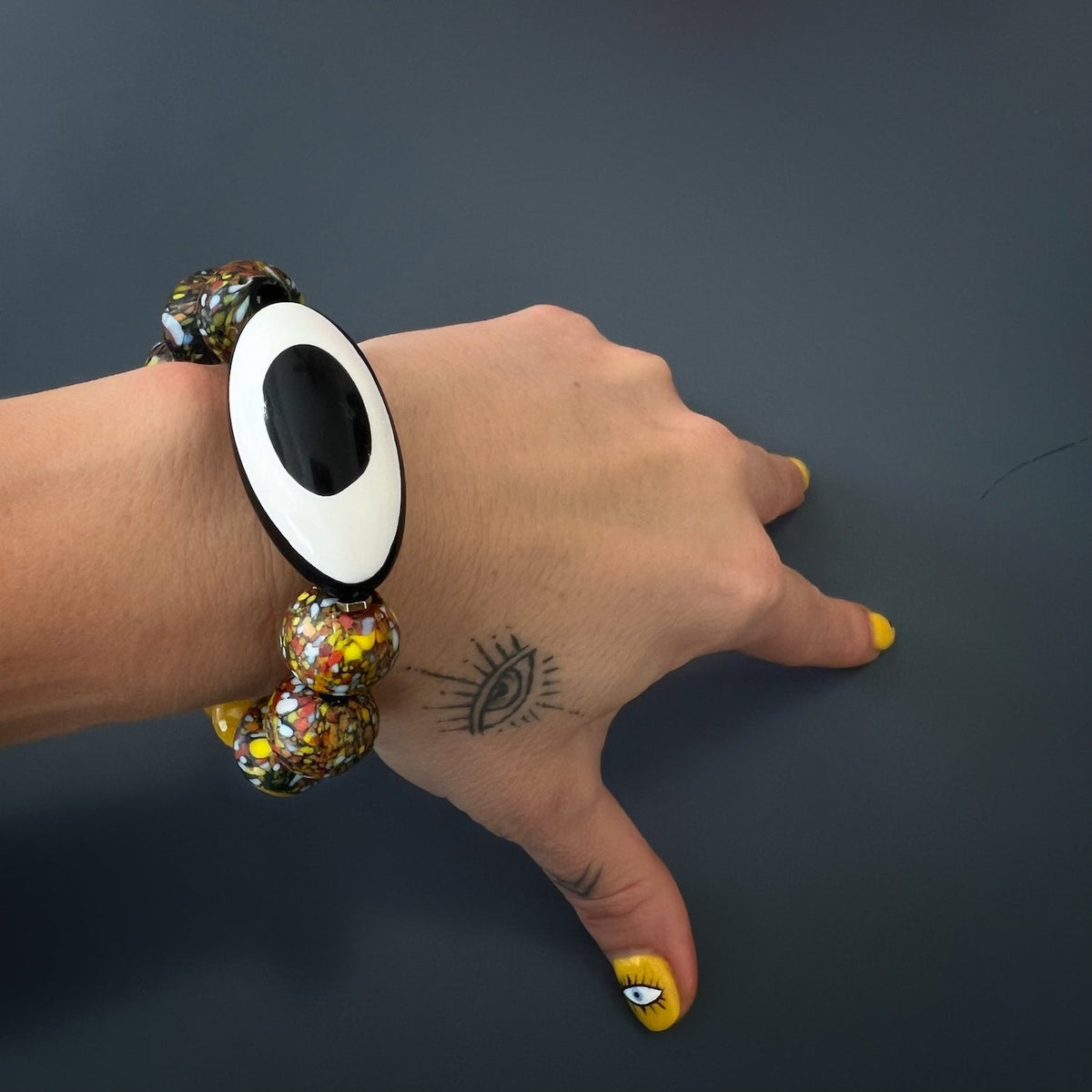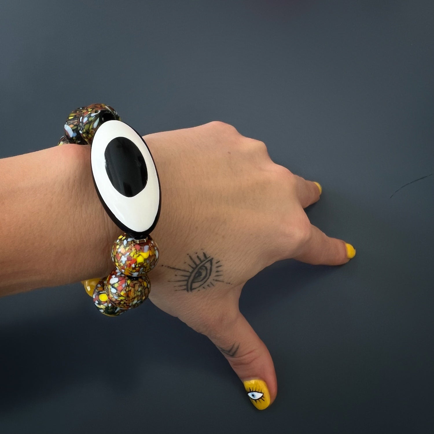 Chunky Evil Eye African Beaded Bracelet - Yellow