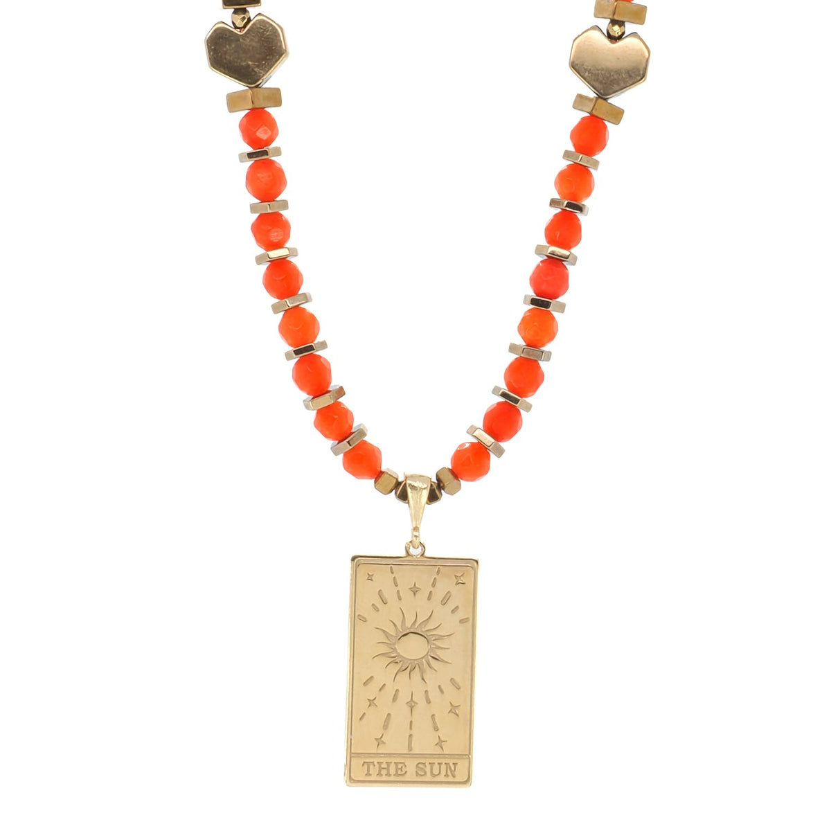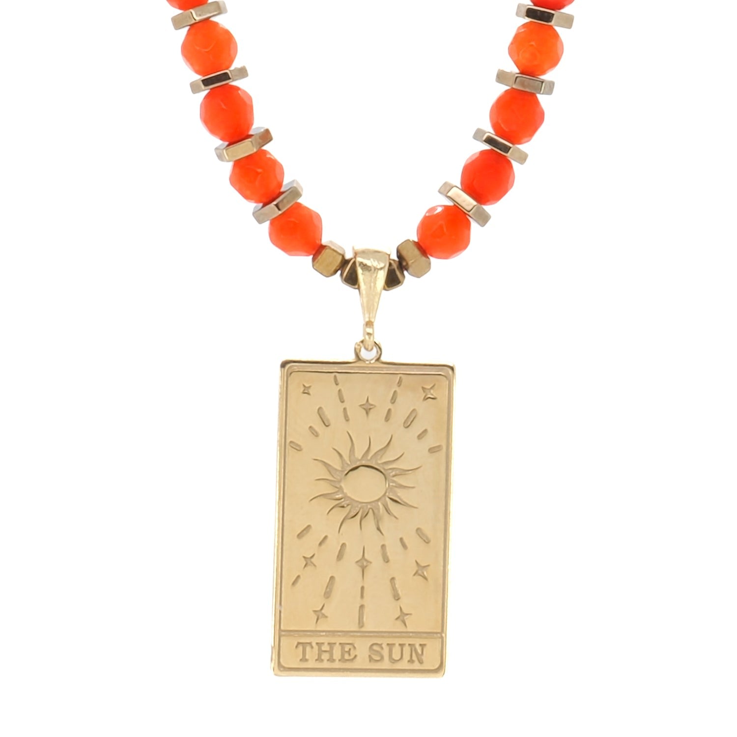 Abundance Sun Tarot Card Red Cornelian Beaded Necklace - Red