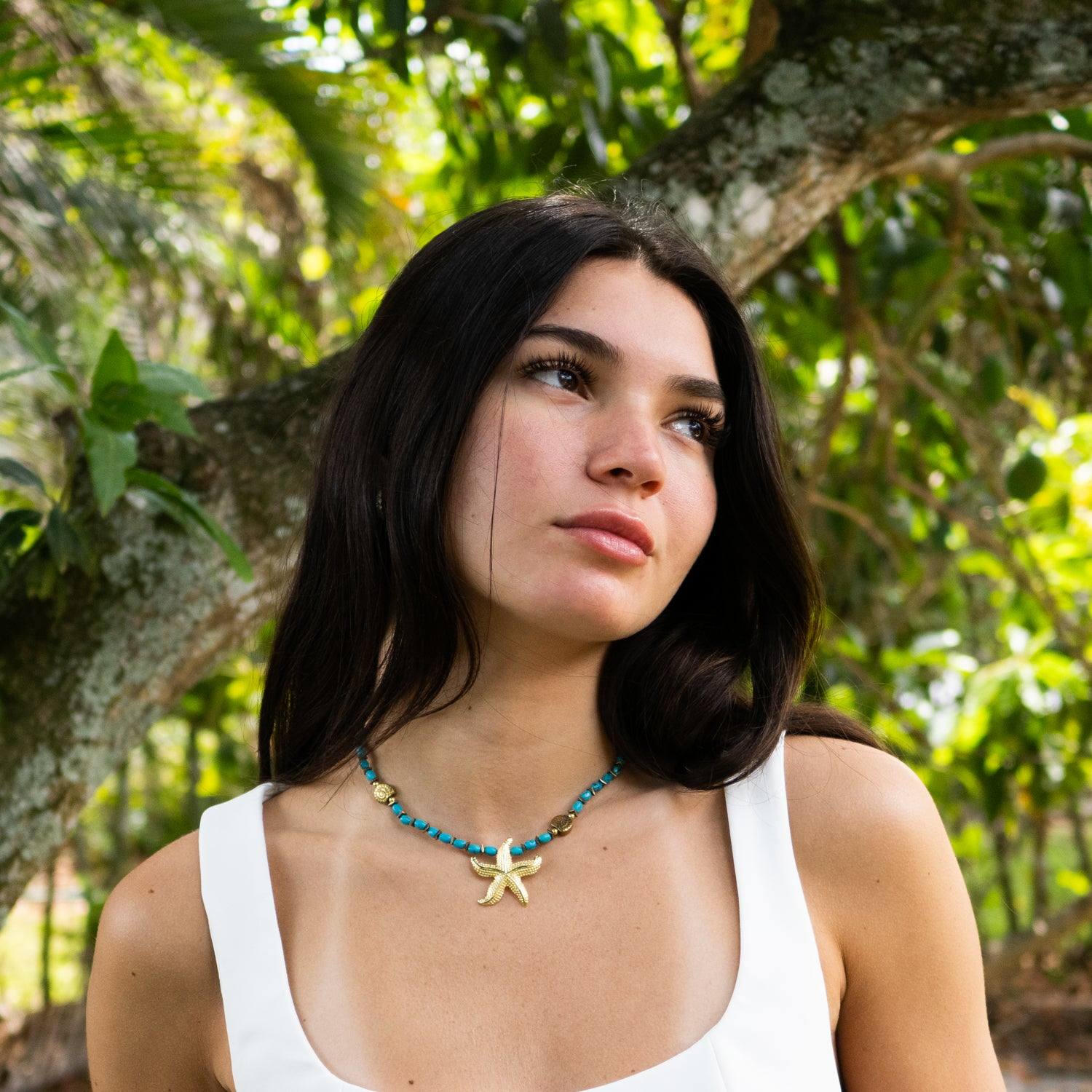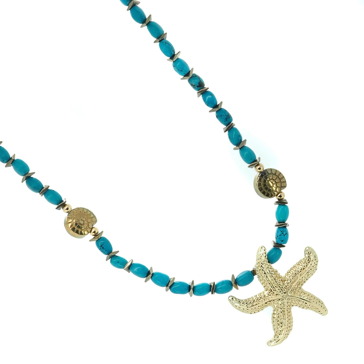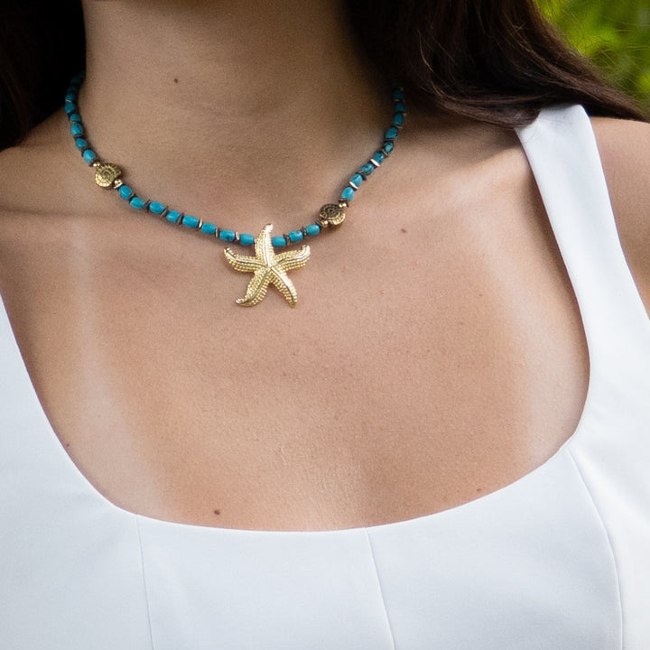 Ocean Spirit Starfish & Turquoise Choker Necklace - Turquoise