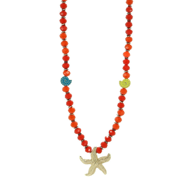 Summer Joy Starfish & Shell Beaded Necklace - Red