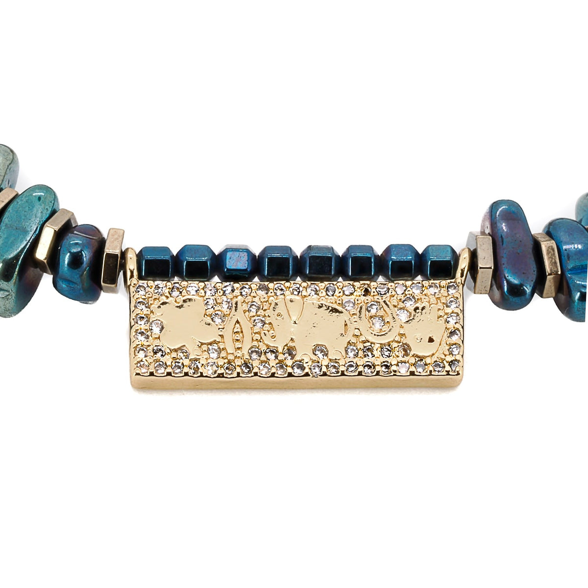 Protection & Luck Blue Hematite Beaded Symbol Bracelet - Gold