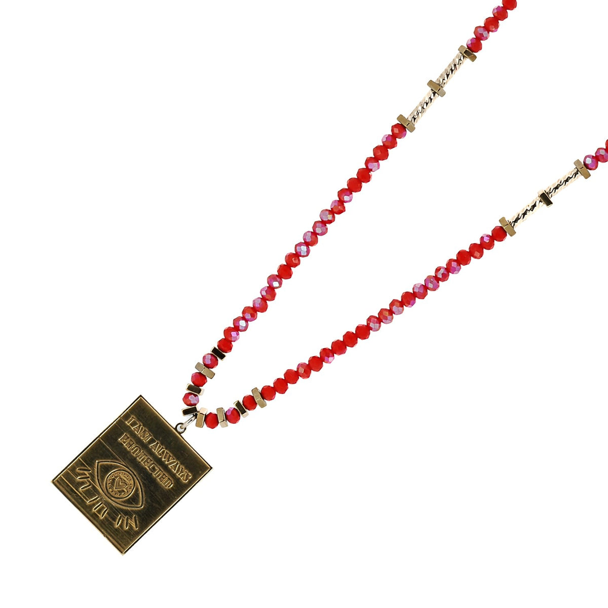 I Am Always Protected Gold Pendant Red Beaded Necklace - Red
