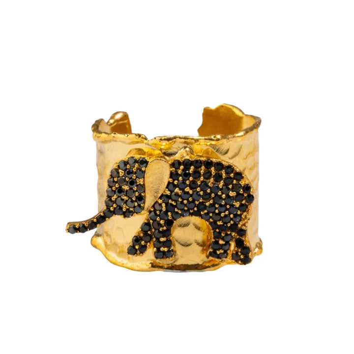 Guardian Black Elephant Gold Cuff Adjustable Ring - Black