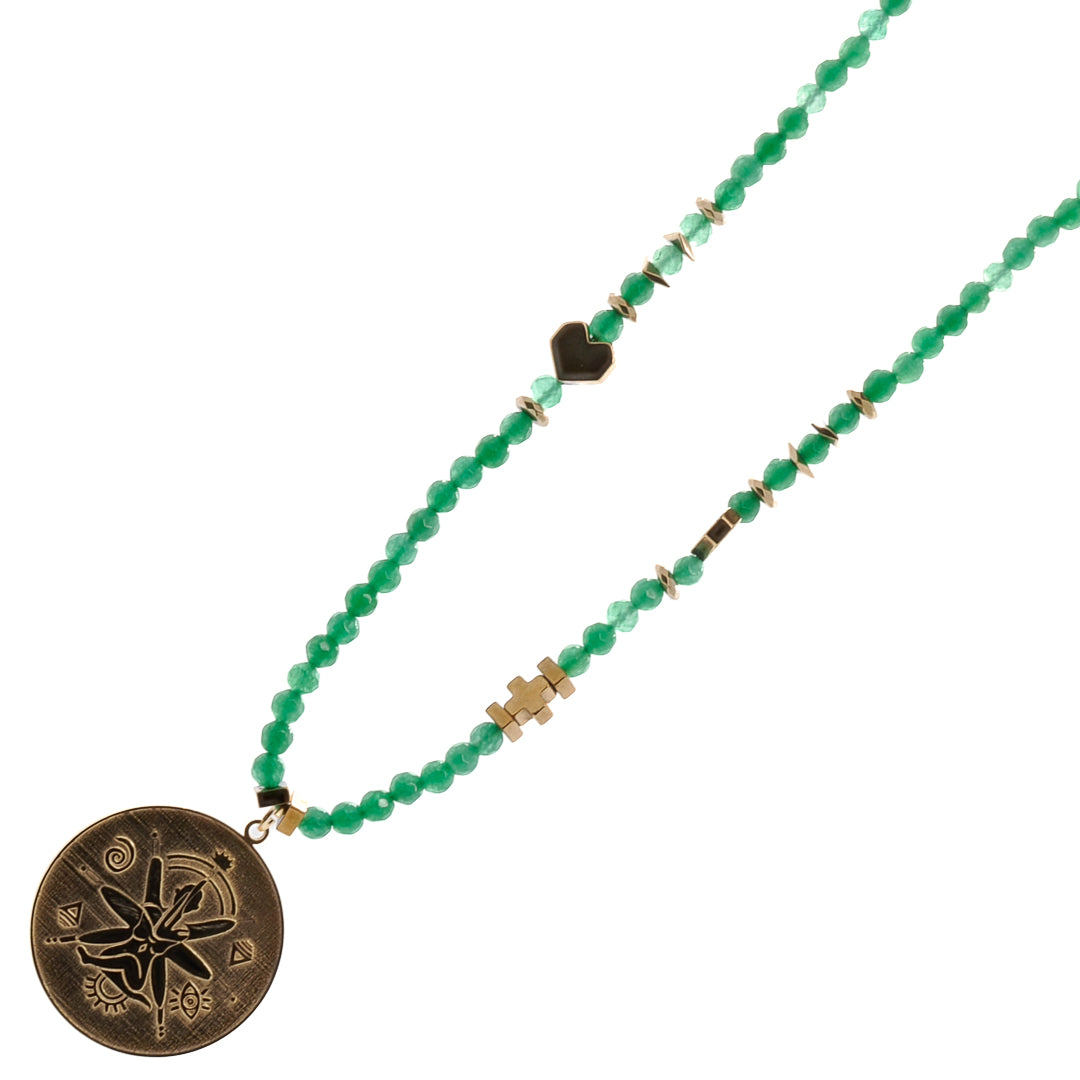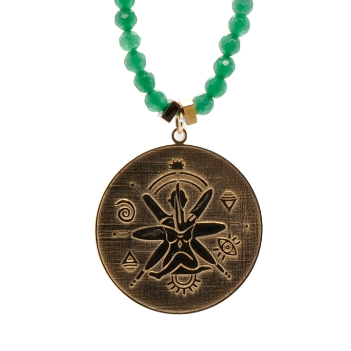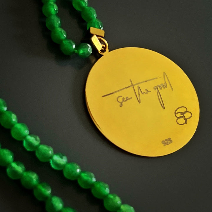 Green Jade Stone Spiritual Soul Gold Medallion Pendant Necklace - Green
