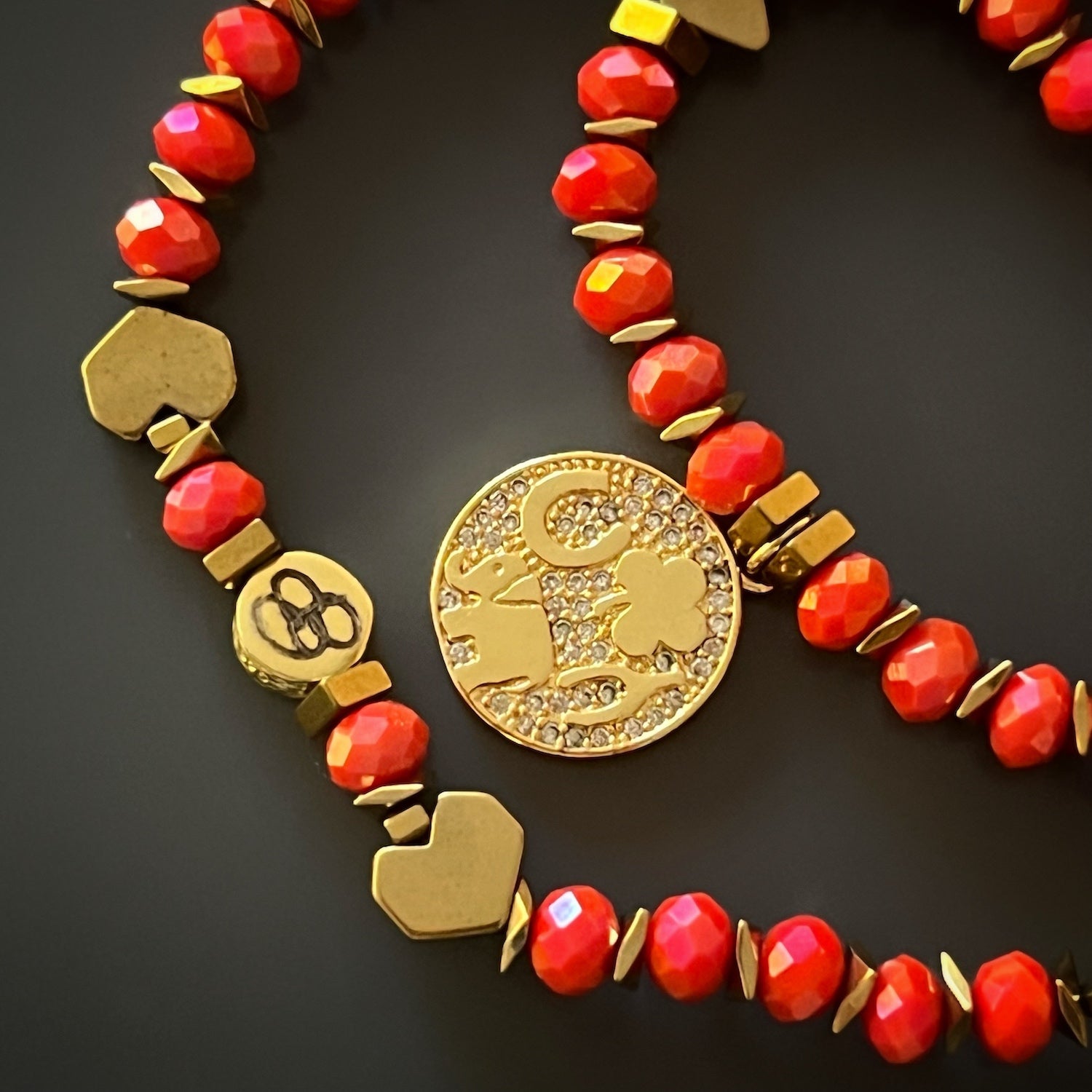 Lucky & Protection Symbol Charm Double Beaded Red Bracelet - Red