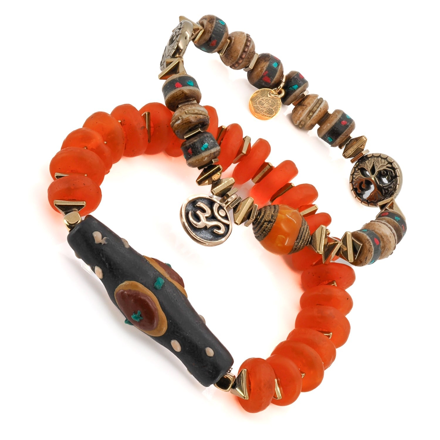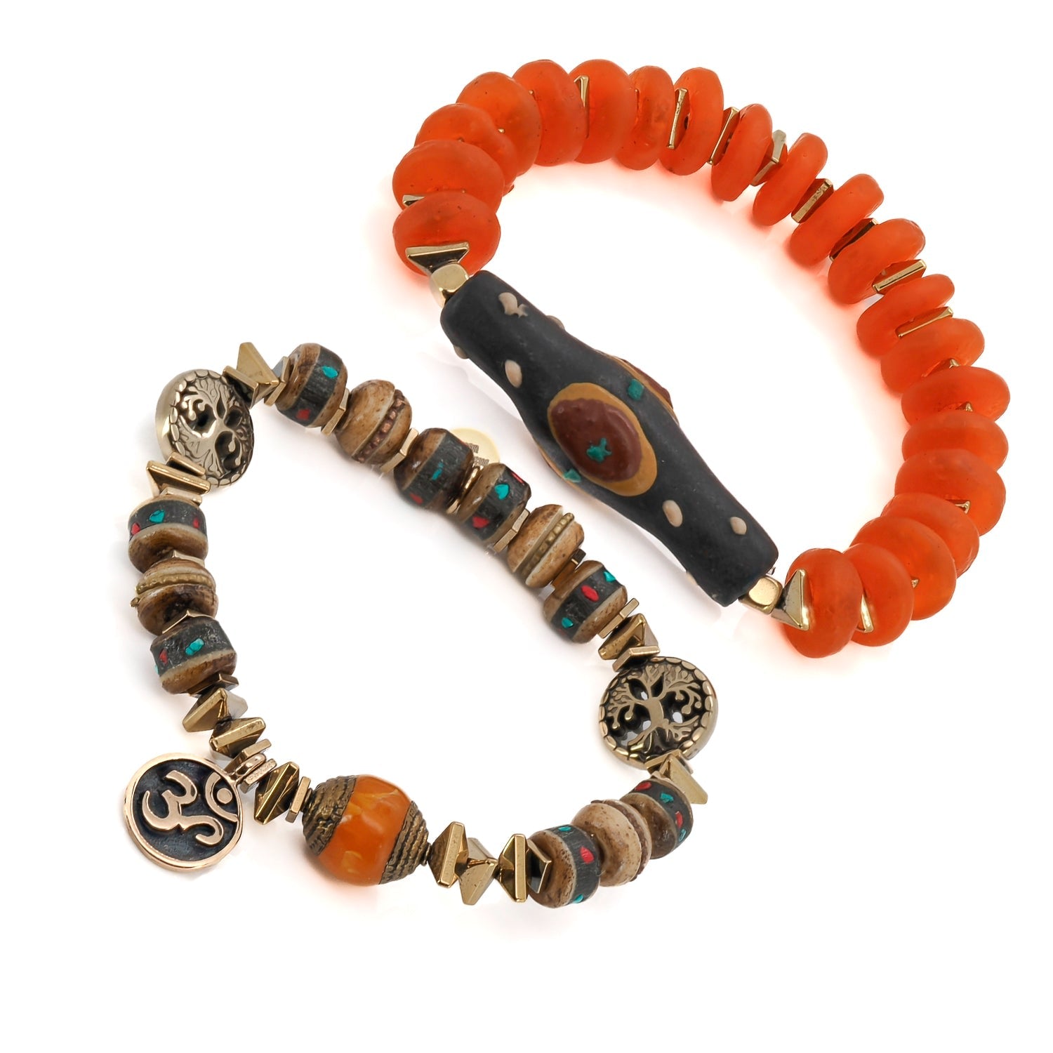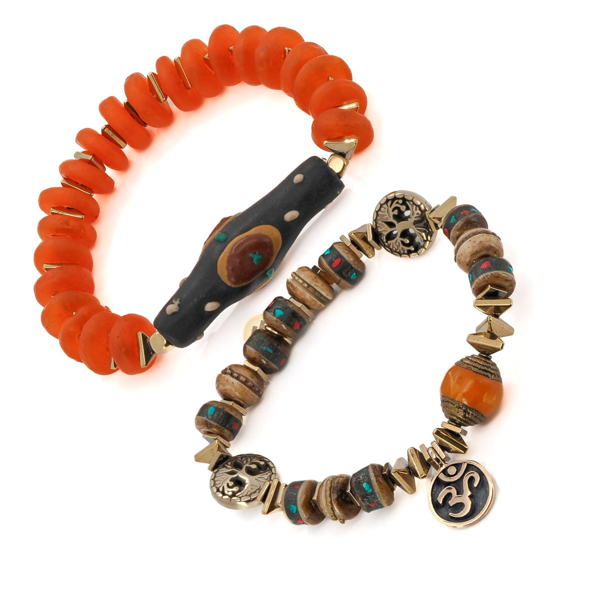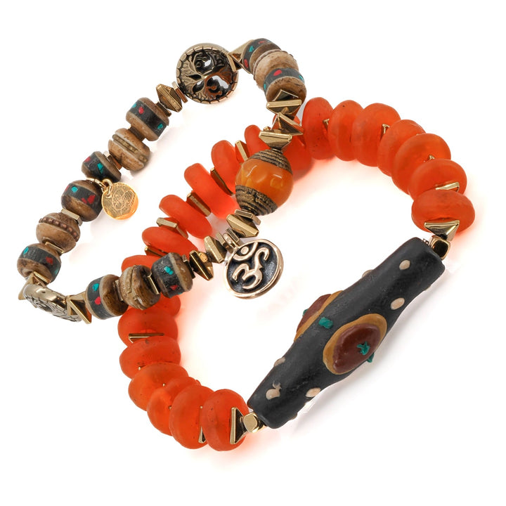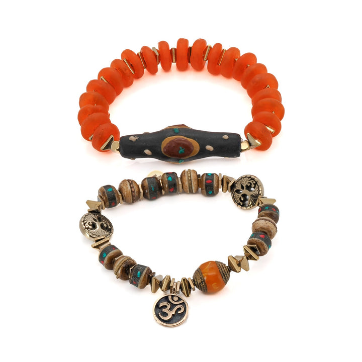 Mystic Nepal Beaded Om Charm Unique Bracelet Set - Orange