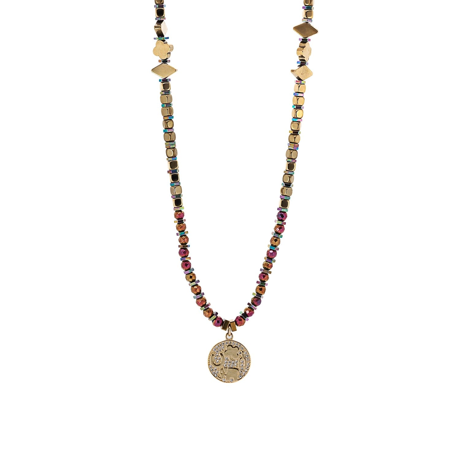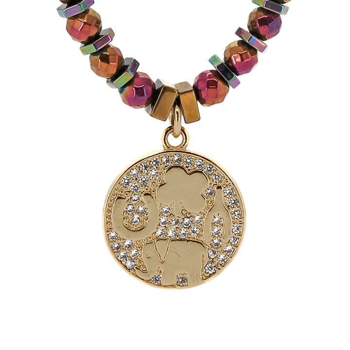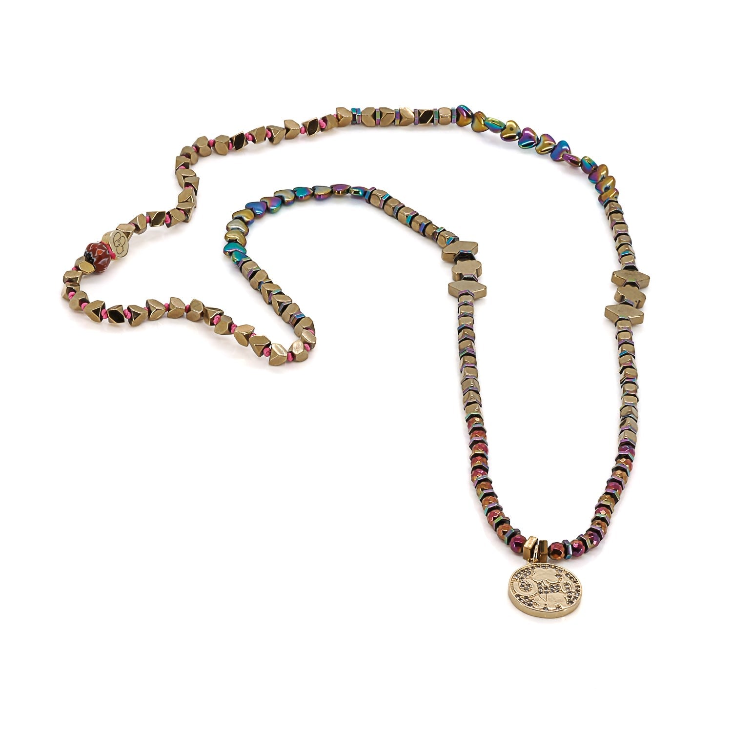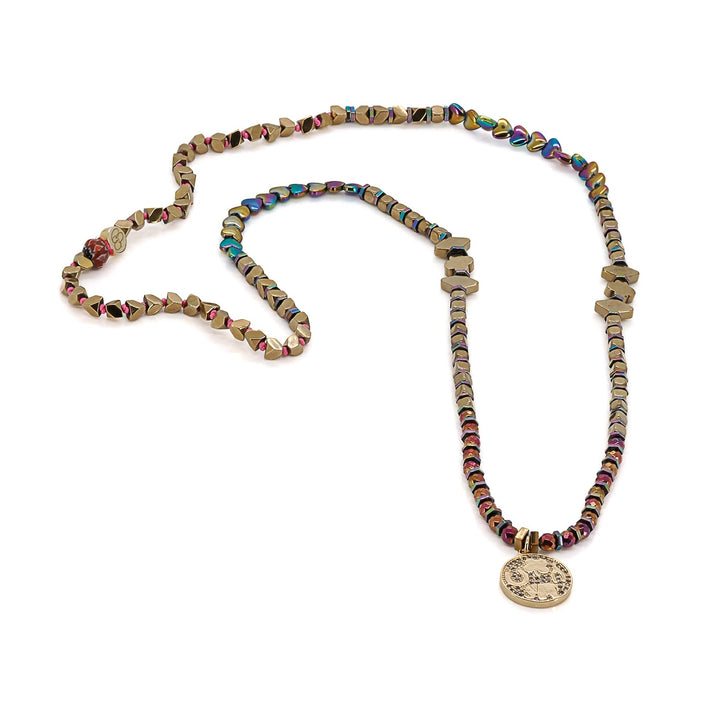 Protection & Luck Symbol Pendant Hematite Stone Beaded Necklace - Gold
