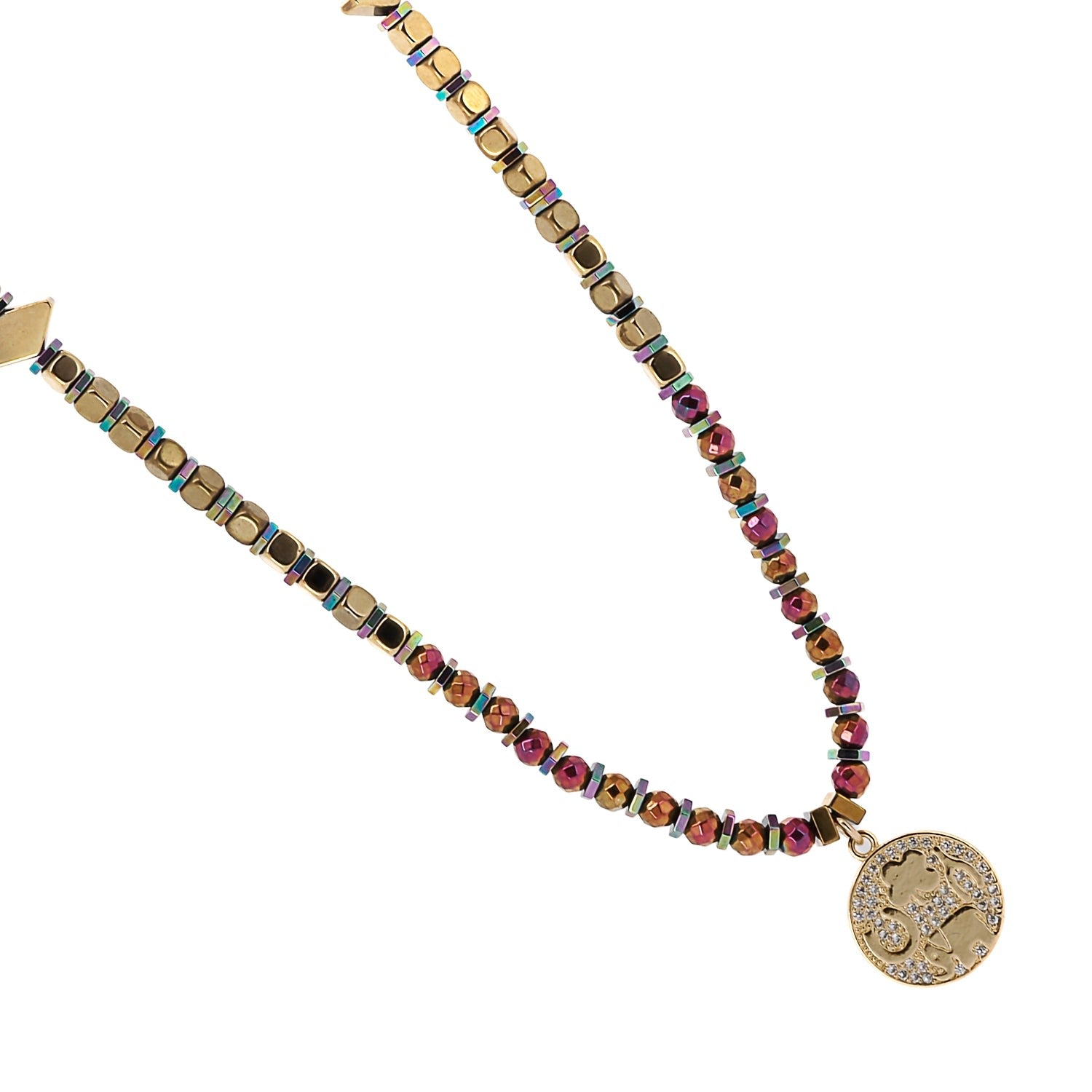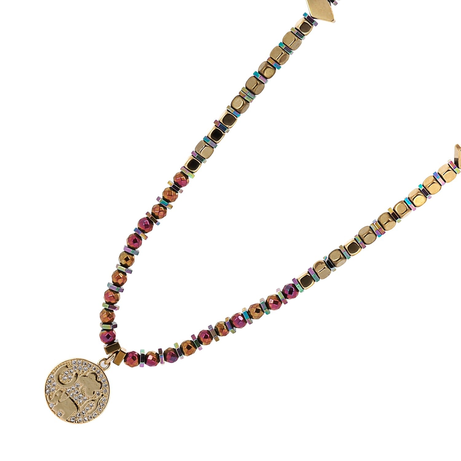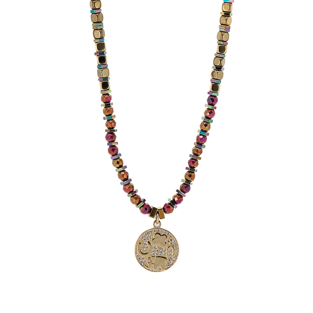 Protection & Luck Symbol Pendant Hematite Stone Beaded Necklace - Gold