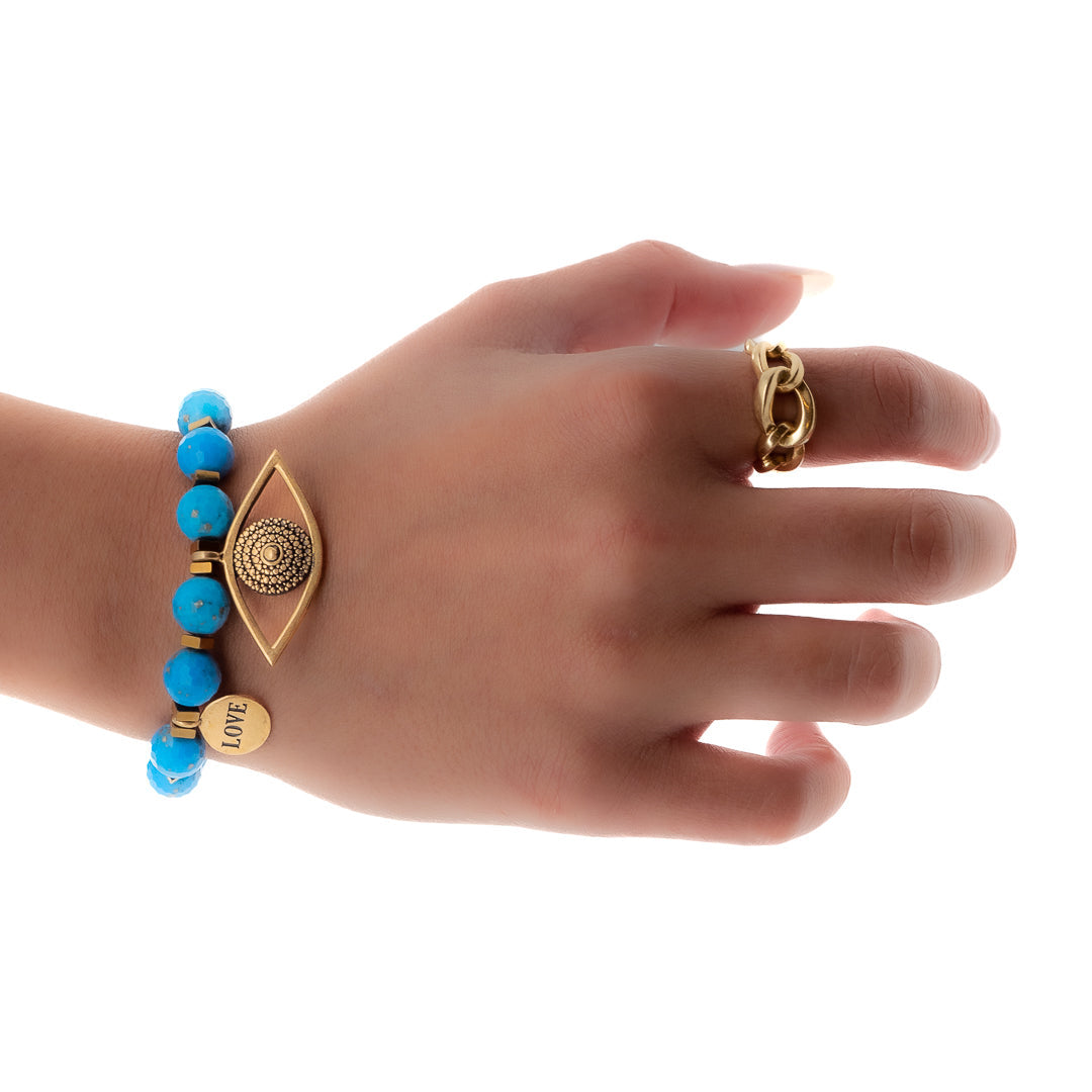 Turquoise Stone Evil Eye Charm Beaded Love Bracelet - Blue