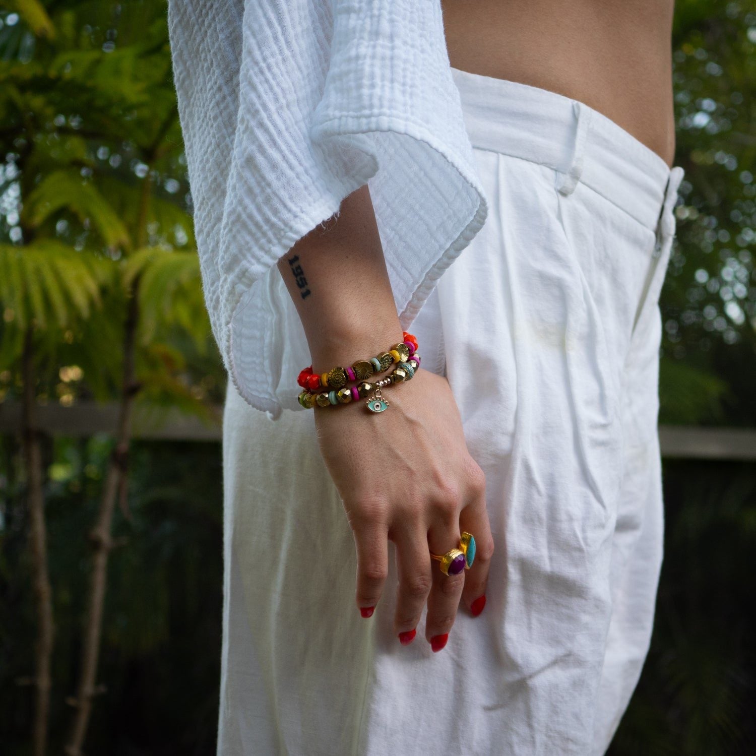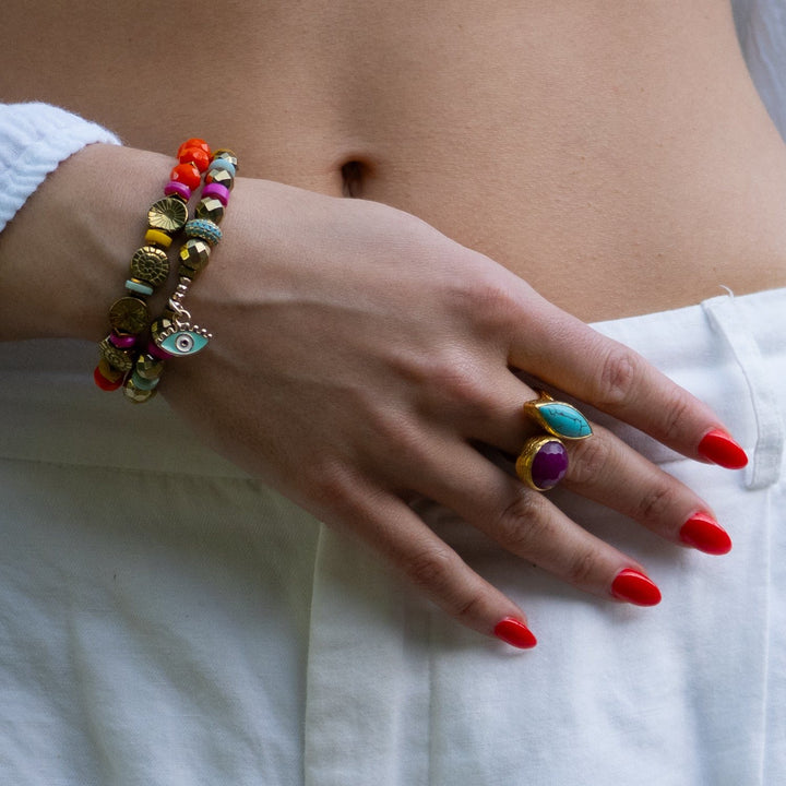 Sunset Breeze Evil Eye Beaded Bracelet Set - Multicolour