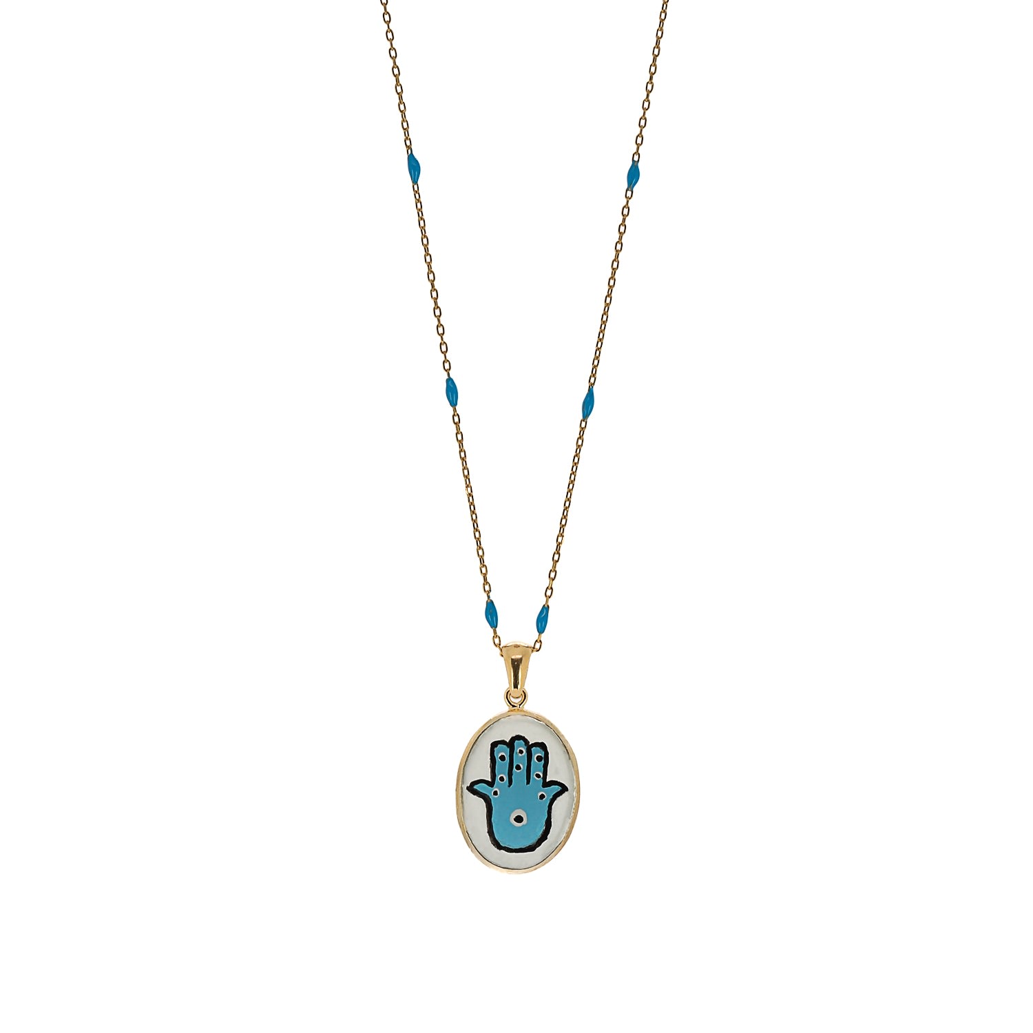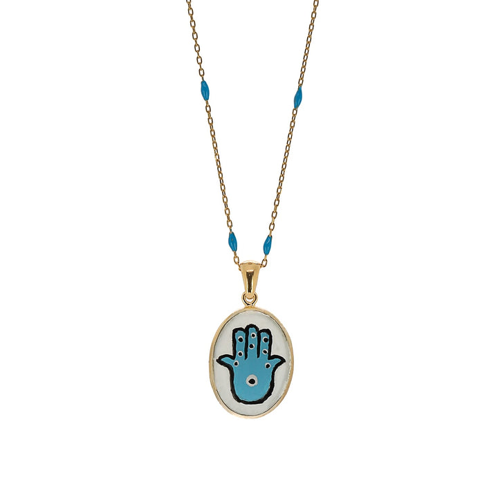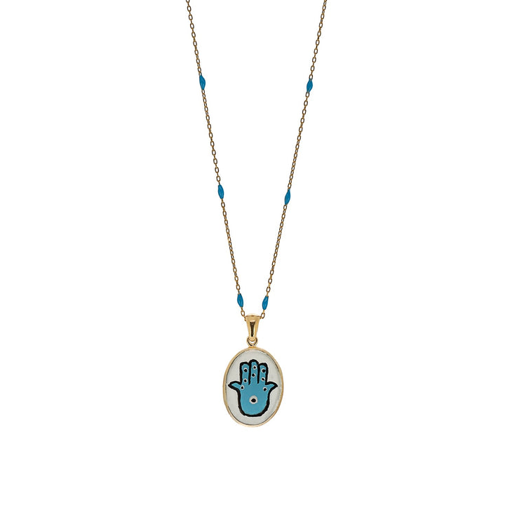 Hamsa Hand Good Fortune Turquoise Pendant Gold Chain Necklace - Turquoise