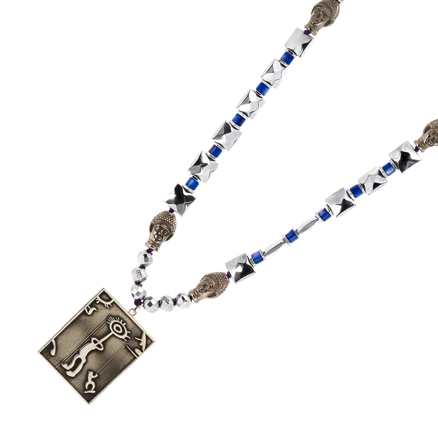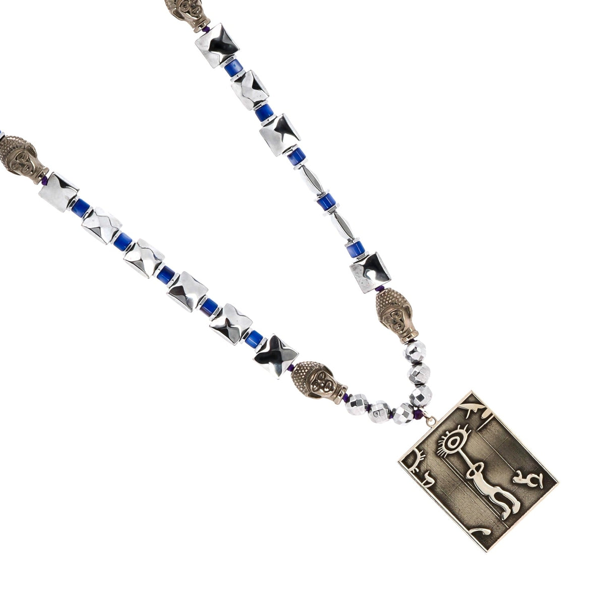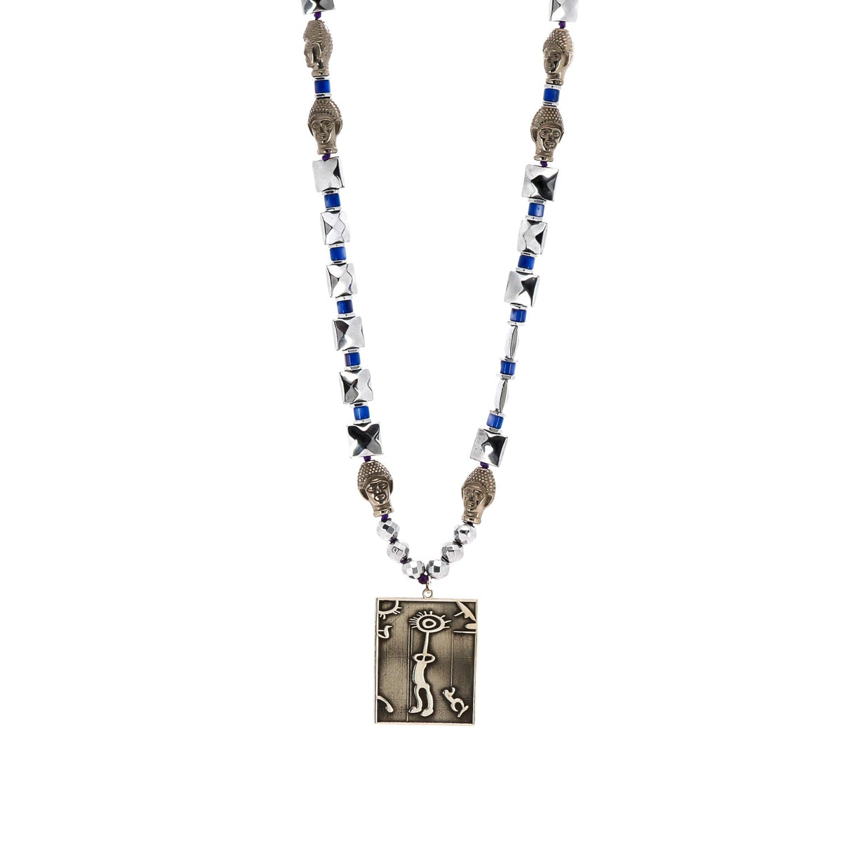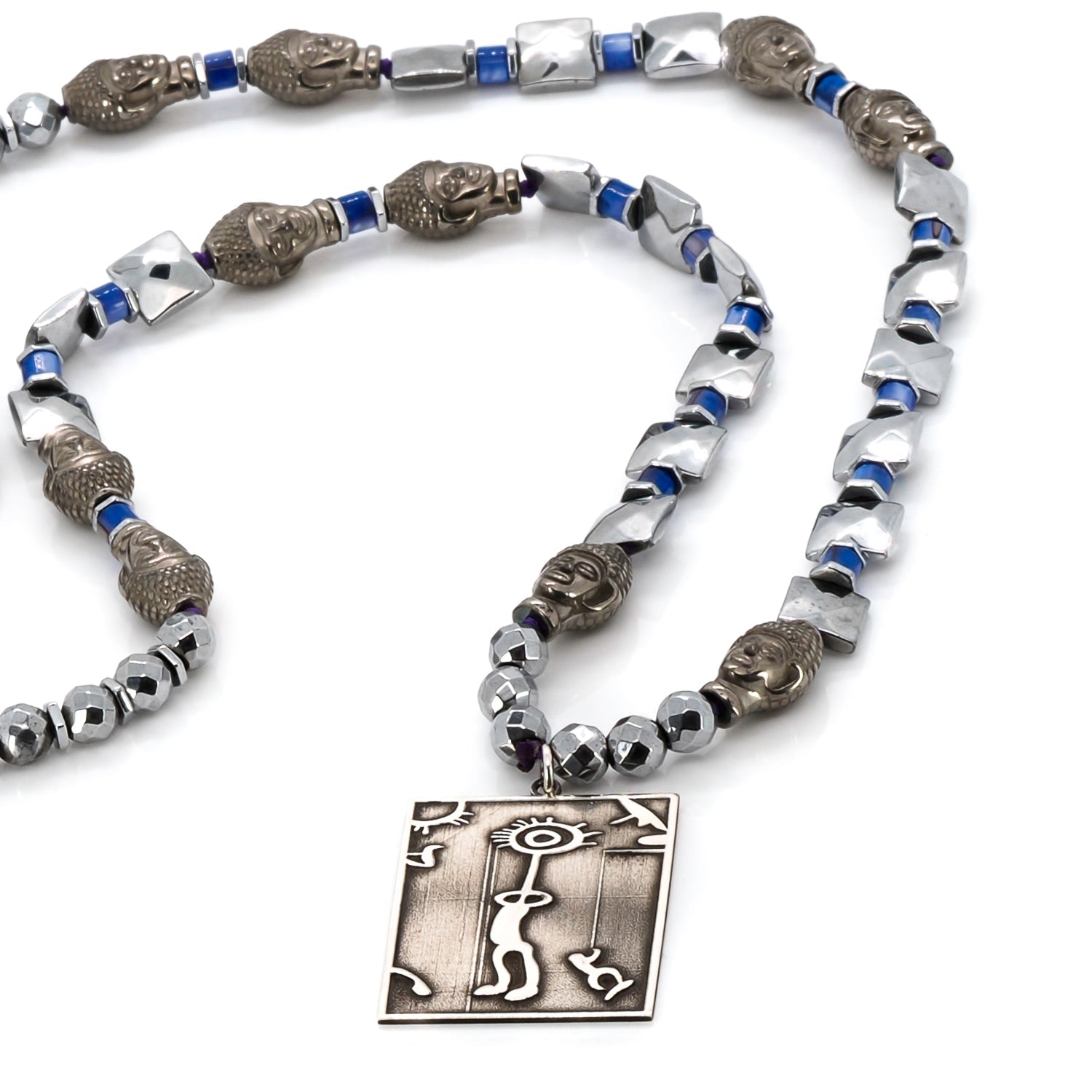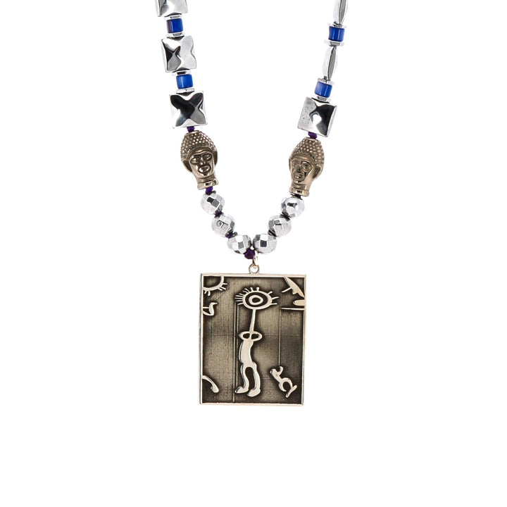 Sterling Silver Spiritual Shaman Pendant Silver Hematite & Buddha Beaded Necklace - Silver