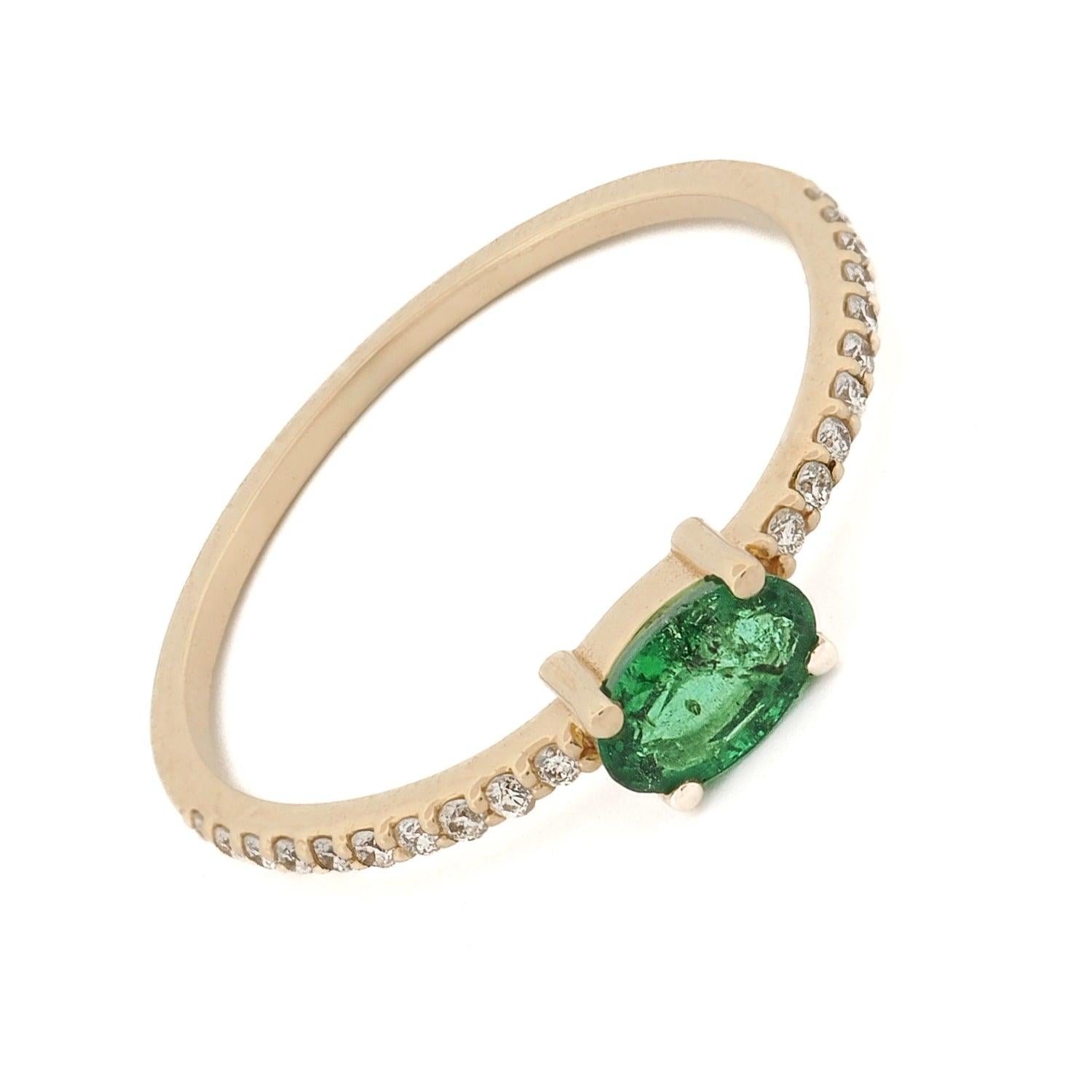 Emerald Harmony Diamond Solid Gold Ring - Green