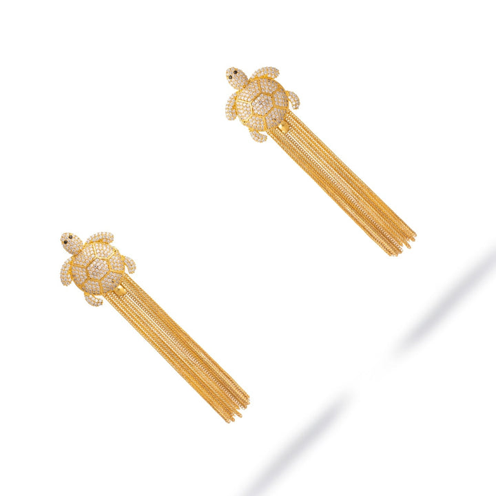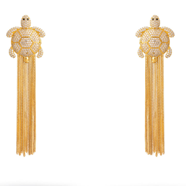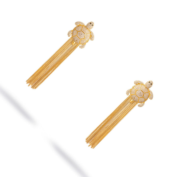 Diamond Turtle Chunky Tassel Earrings - Gold