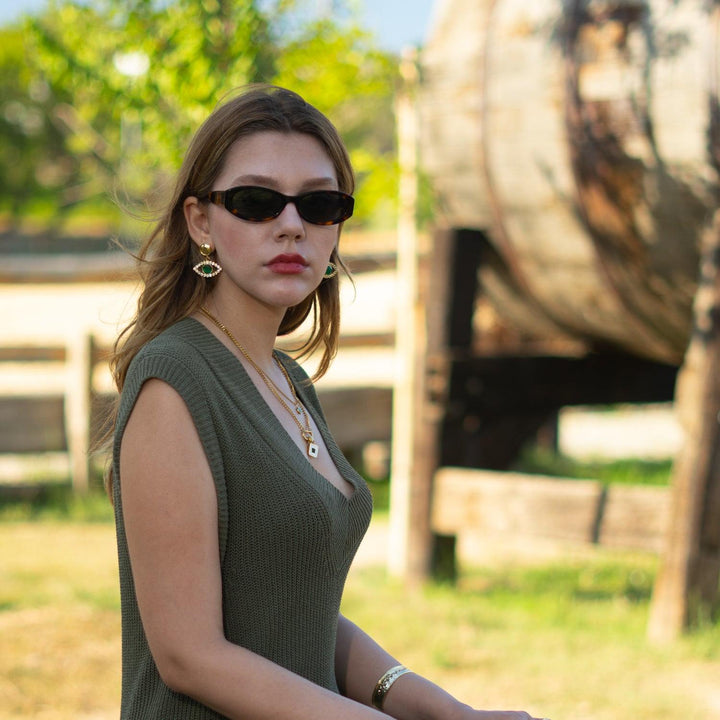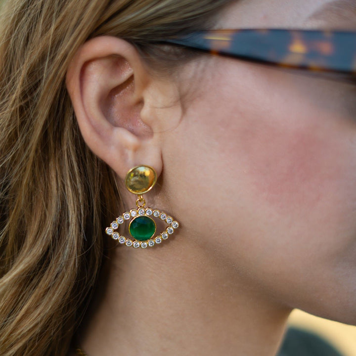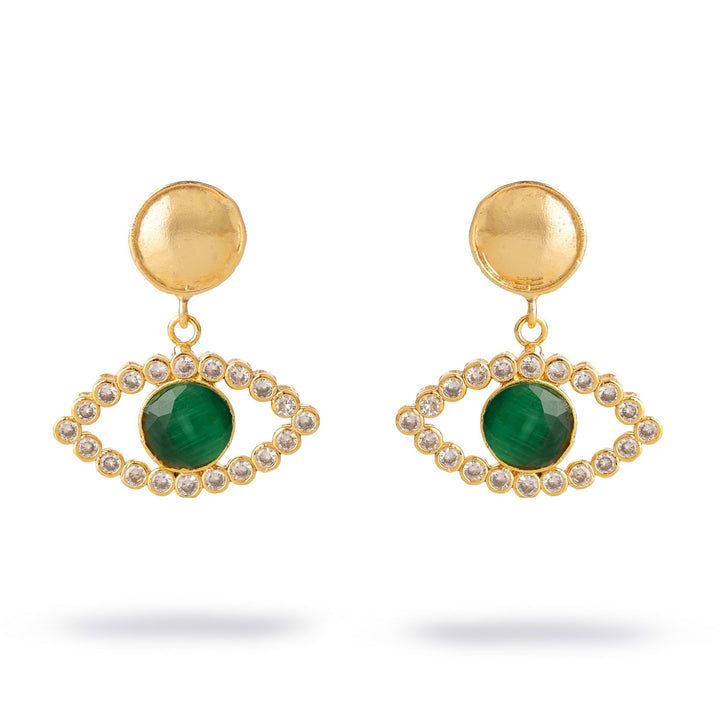 Emerald Harmony Eye Earrings - Gold