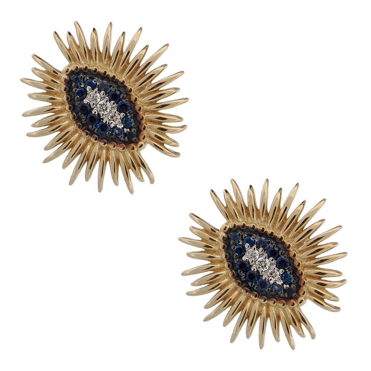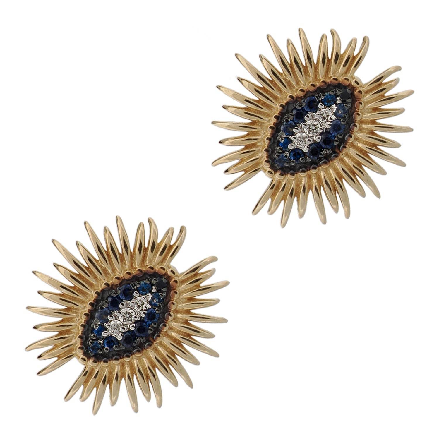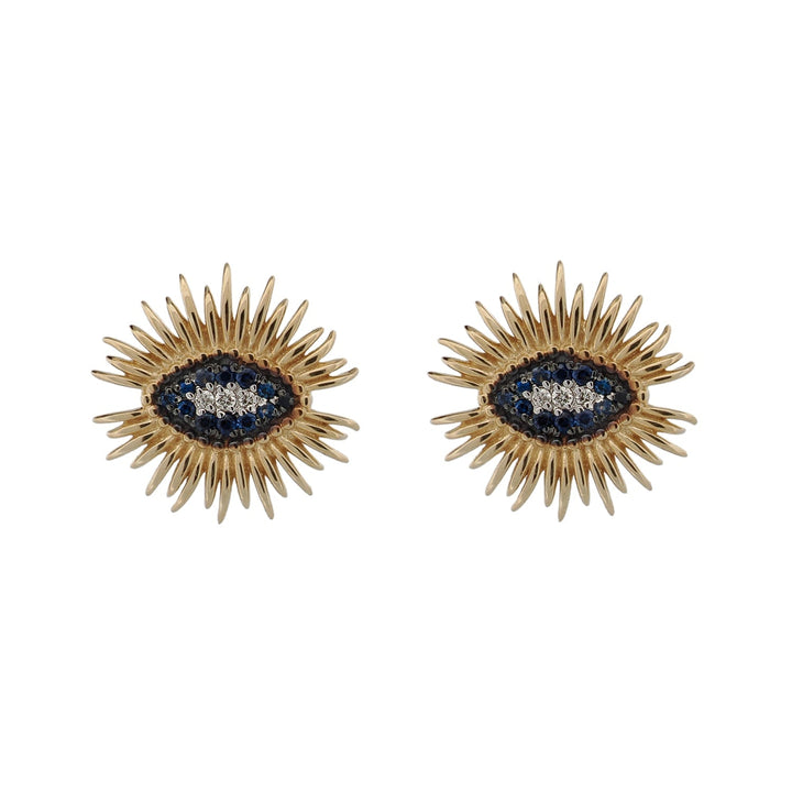 Spiritual Guardian Evil Eye Diamond Sapphire Gold Stud Earrings - Blue