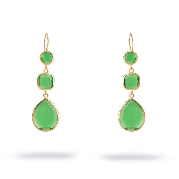 Mystic Green Cat Eye Gold Dangle Earrings - Gold