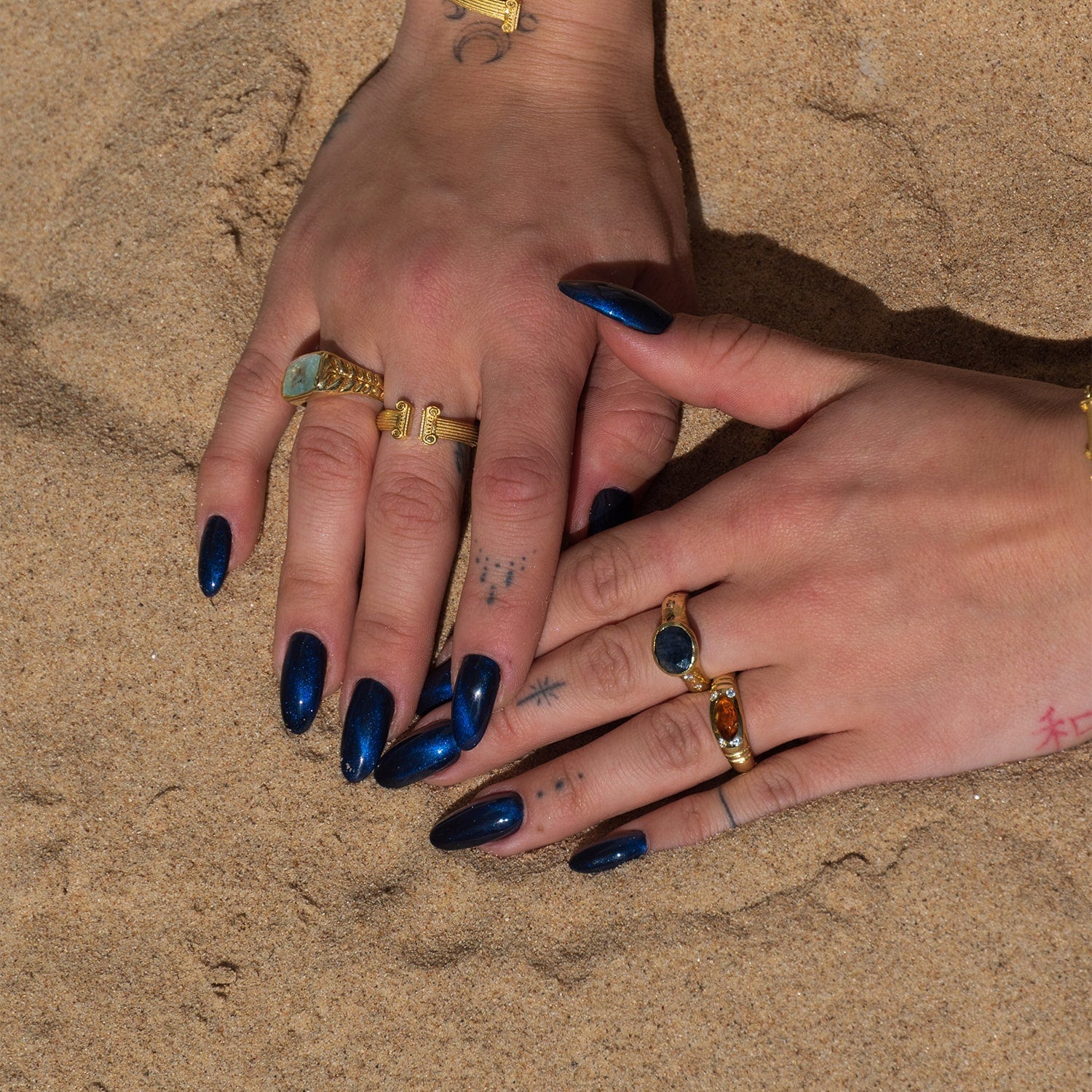 The Oceanus II Ring by Ece London is a unique and spiritual piece. Inspired by the Greek river god Oceanus, this chunky ring is hand-sculpted with 22K gold vermeil and a mesmerizing amethyst gemstone. The gold represents Oceanus' power, while the amethyst speaks for his dedication to the earth. This ring is a delicate and meaningful piece that connects you to ancient mythology and the power of nature.