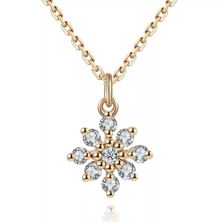 This necklace is made of solid sterling silver with 14k gold plating. It features a cubic zirconia flower and a 44cm total length chain with an extender.