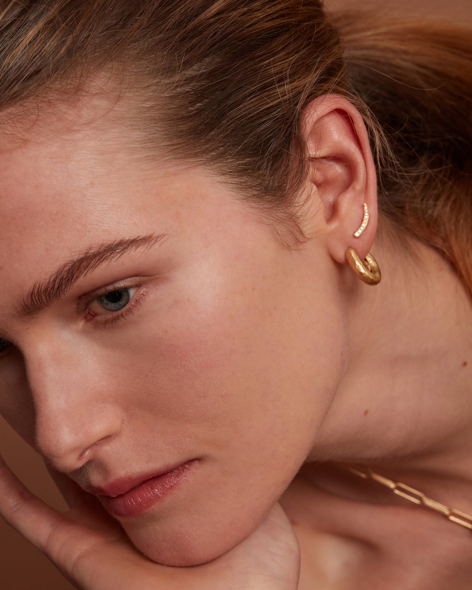 The Wander Hoops Bold by Eloise Jewelry are a must-have style with a perfectly balanced volume. Hand-faceted by expert artisans, these hoops offer a sleek, contemporary allure that transitions effortlessly from the office to vacation. Handmade in Italy, they are a stylish statement piece with a modern, chic design.