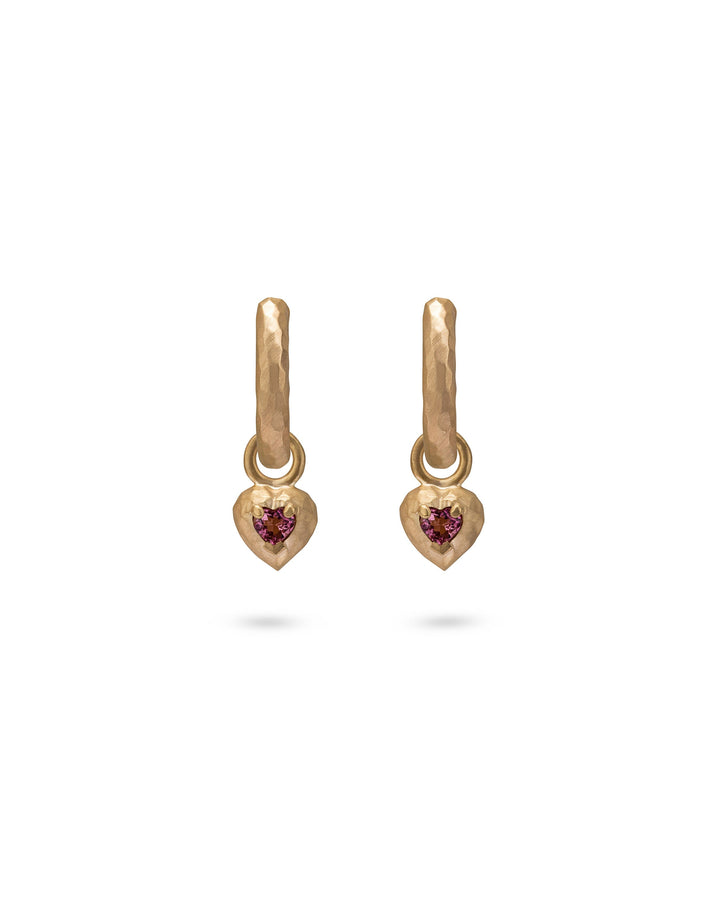 Wander Hoops Medium With Heart Charms Pink Tourmaline