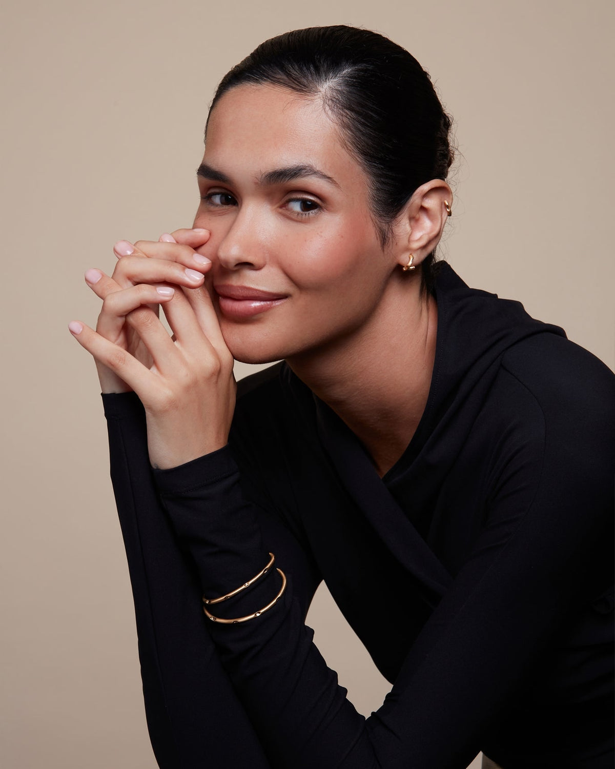 This Sahara Bracelet by Eloise Jewelry is a modern and captivating bangle. Its refined charm lies in the balance of its sculptural shapes and its matte finish with contrasting shiny dimples. Designed to be easily stackable, this bracelet adds a cool and contemporary flair to any look.