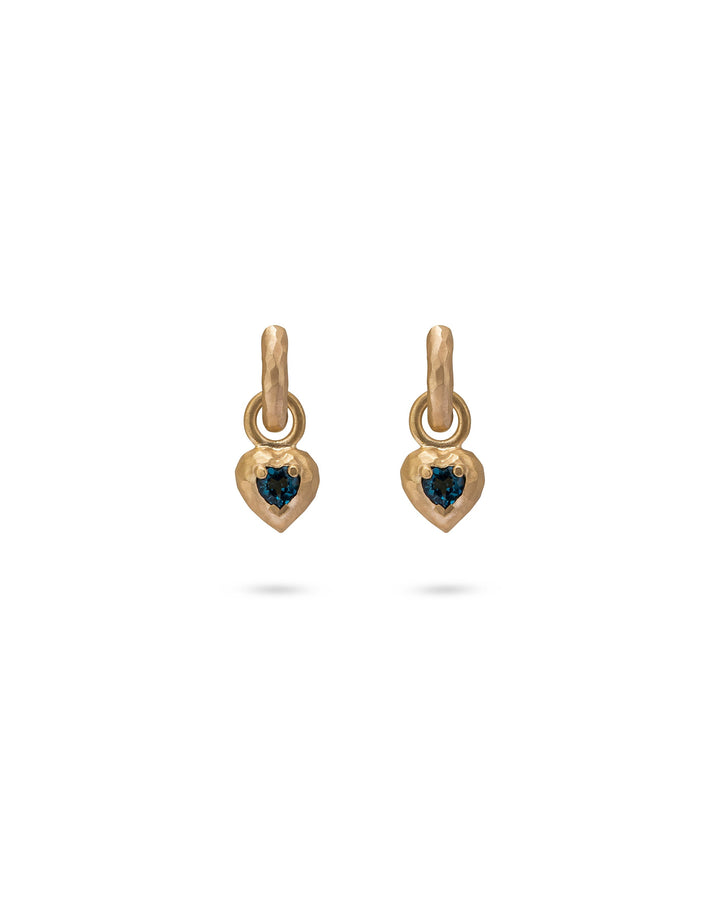Wander Hoops Small With Heart Charms Deep Blue Topaz