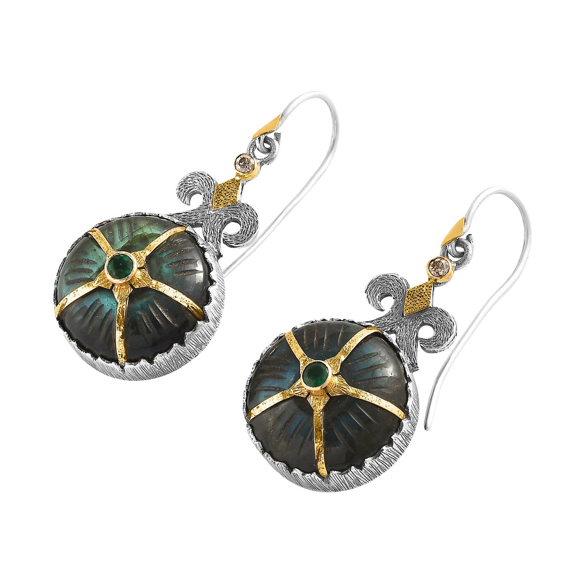 Labradorite Emerald Diamond Statement Dangle Earrings