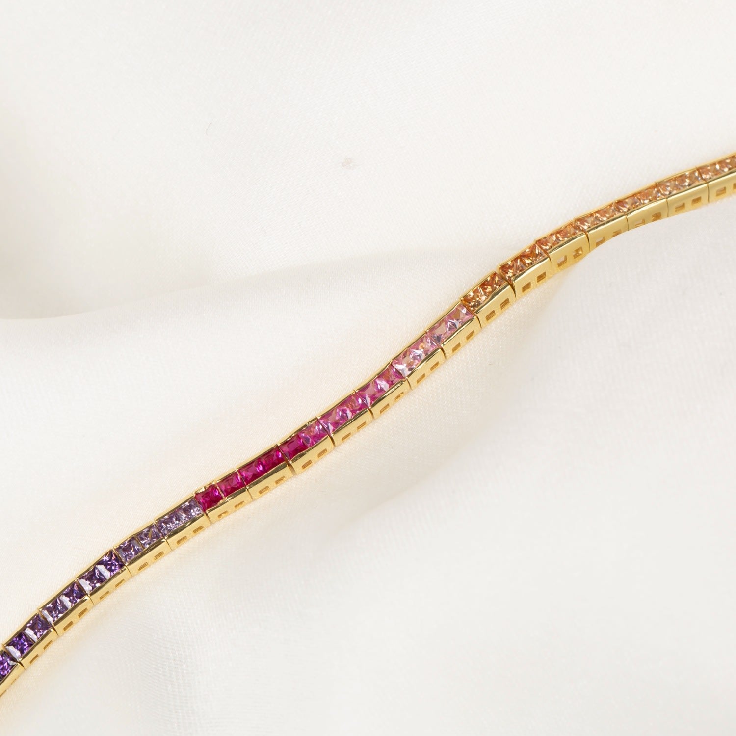 This Mia Colorful Tennis Bracelet by Ep Designs is a perfect piece for layering, offering a playful and vibrant touch to any look. Its tennis-style design is a timeless classic, while the colorful gemstones provide a modern and joyful twist. Handcrafted for everyday wear, this bracelet is a versatile and stylish accessory that adds a subtle sparkle to your day.