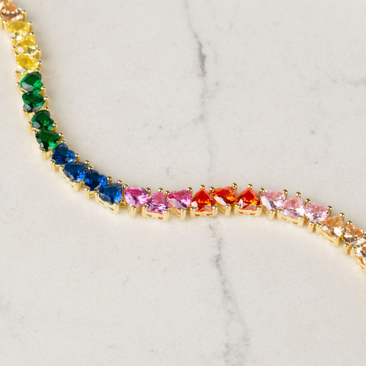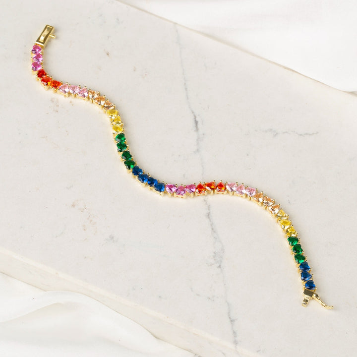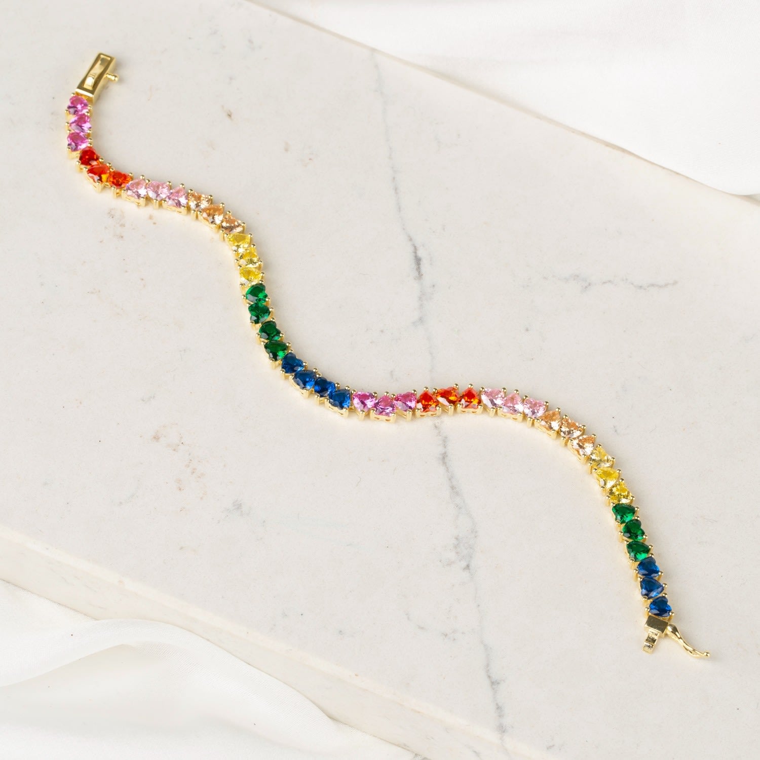 This Rainbow Heart Bracelet by Ep Designs is a gorgeous bracelet designed to uplift your spirits. The colorful stones set in a heart design can make you feel better throughout the day, bringing a sense of joy and positivity. This handcrafted bracelet is a beautiful and meaningful accessory, perfect for adding a pop of vibrant color to your wrist.