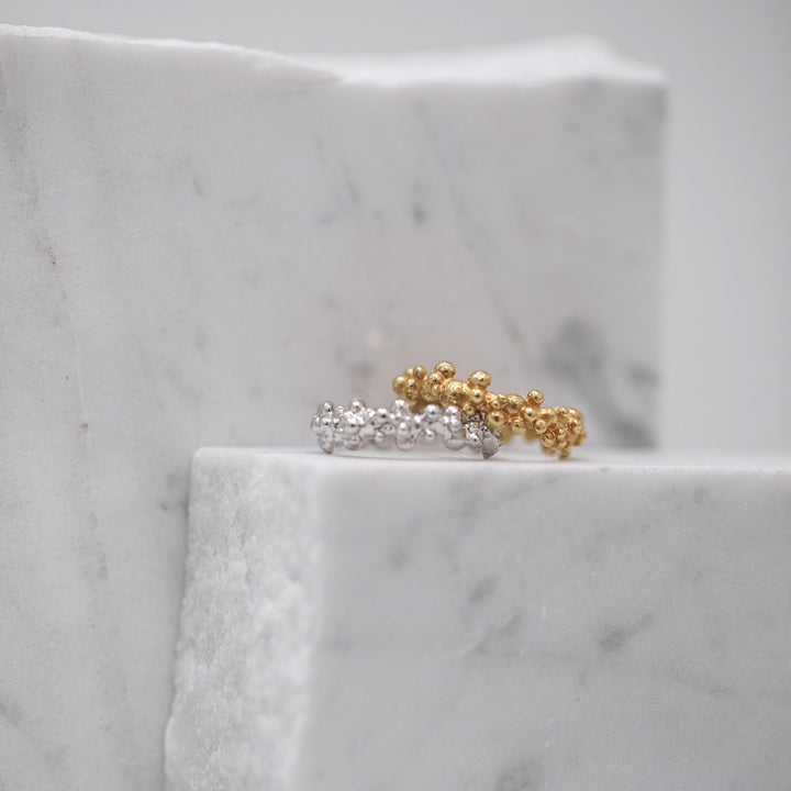 This Céleste Deux Ring Gold by Eva Remenyi is a simple and elegant accessory. This band is made of 24ct gold-plated brass and is perfect for stacking with other rings for a bold look. It is handmade in their Budapest studio and is a versatile piece that goes with anything.