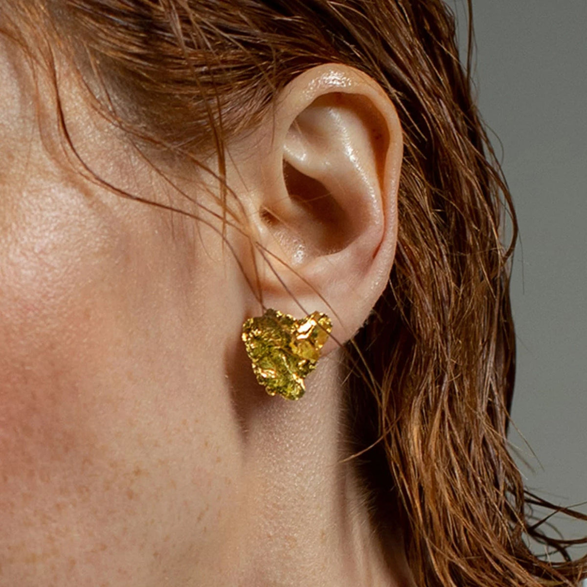 These stud earrings are handmade from 24k gold-plated brass with an organic, undulating surface.