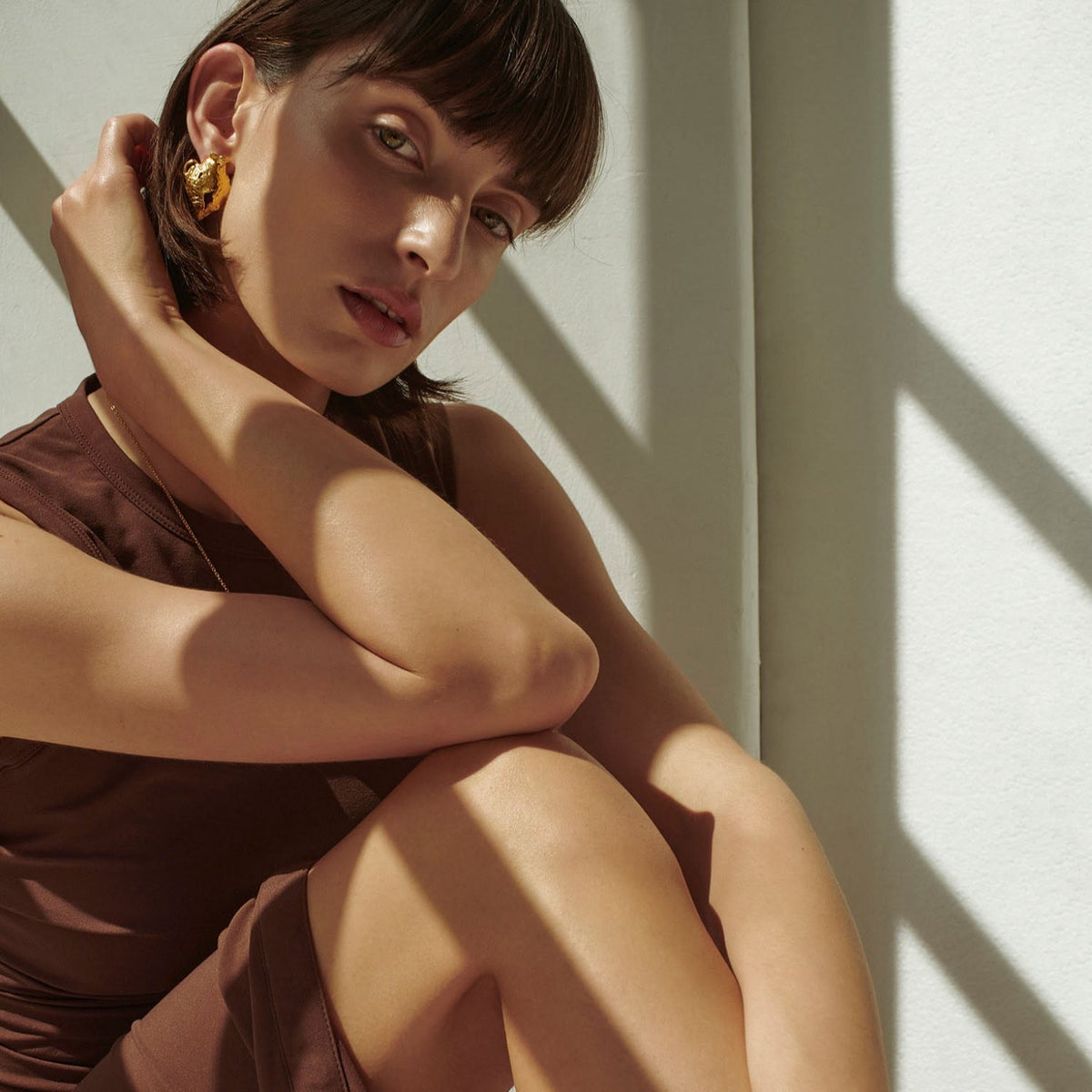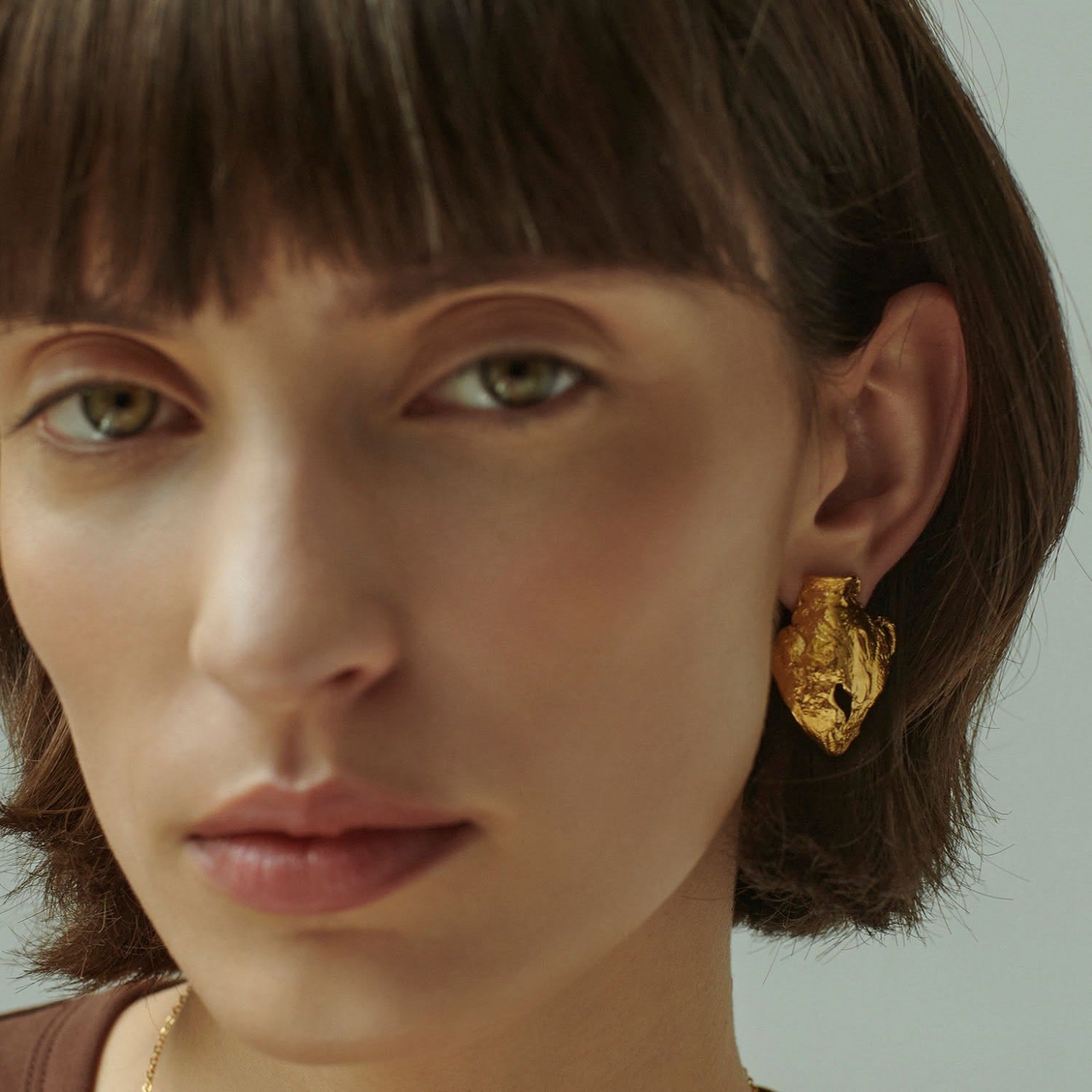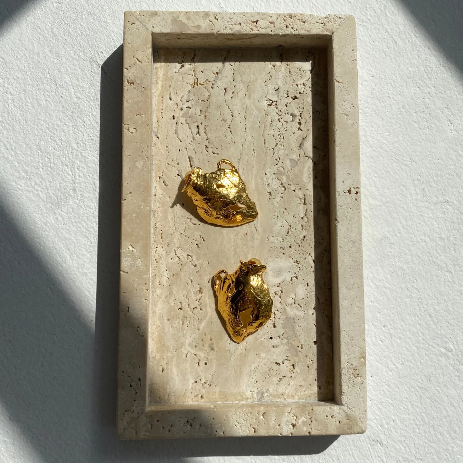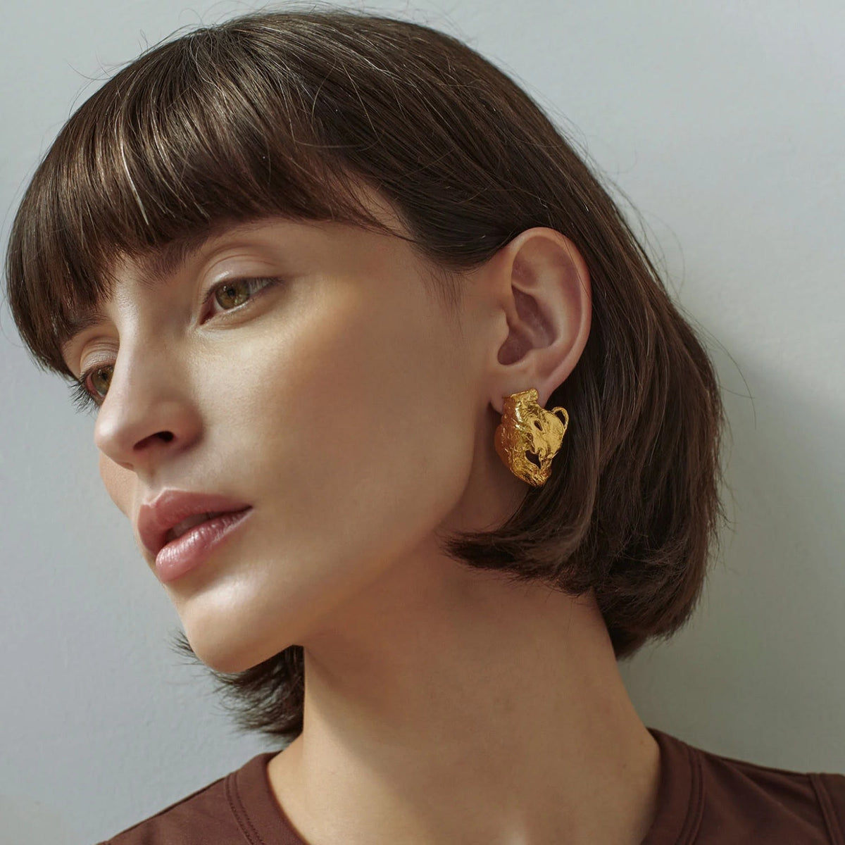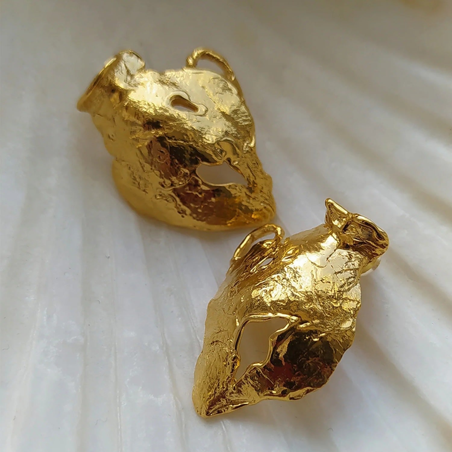 These Vacation Amphora Earrings Gold by Eva Remenyi are a beautiful pair of stud earrings that evoke a timeless spirit and the sense of a sun-kissed holiday. They are inspired by a weathered amphora and are made of 24k gold-plated brass. They are the perfect accessory to elevate your summer look.
