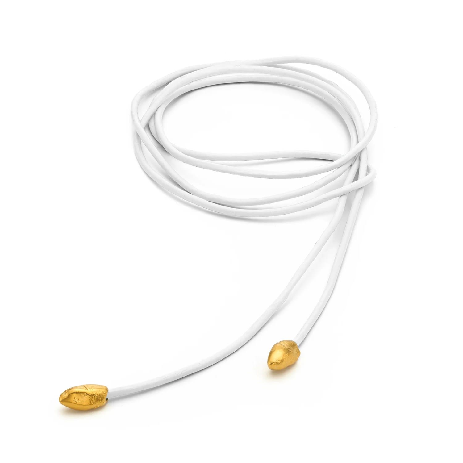 The Origin Bow White Necklace Gold by Eva Remenyi is a minimalist yet alluring summer accessory. This necklace can be worn in four different ways, making it a versatile piece for any occasion. It is stunning on its own or layered with other necklaces, bringing effortless charm to every look.