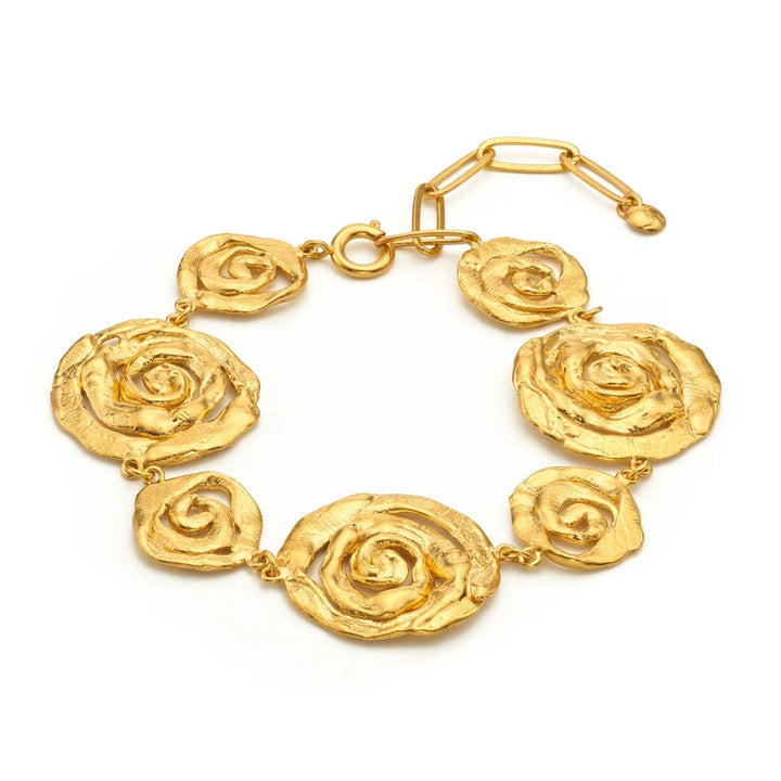 This bracelet is handcrafted from 1 micron 24-karat gold-plated brass and is nickel-free.
