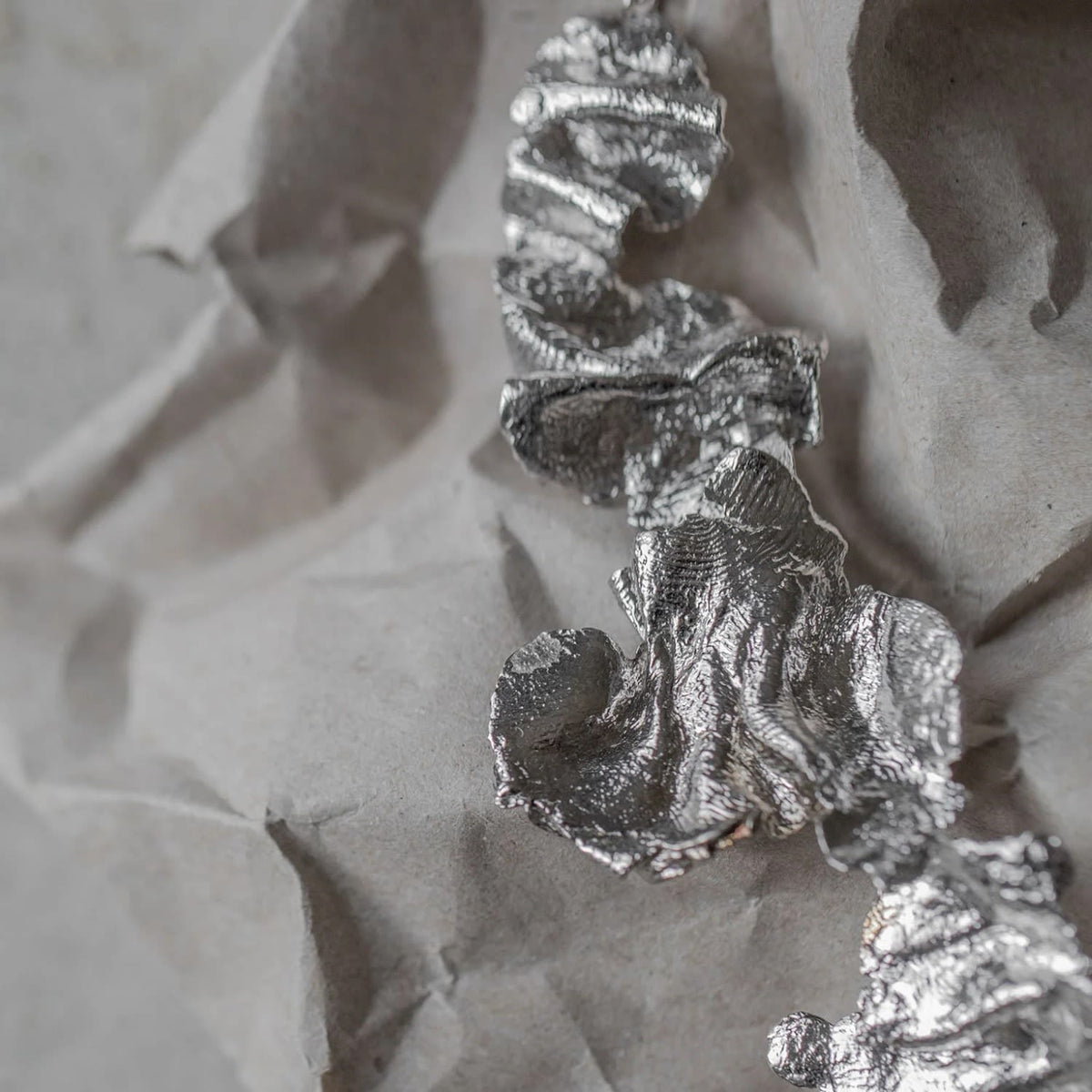 The Artemis Bracelet Silver by Eva Remenyi is a real statement piece. The undulating surface is reminiscent of ripples in the sea, creating a form that is both bold and delicate. The rhodium-plated recycled silver and extendable chain clasp make it a comfortable and stylish accessory that can fit a variety of wrist sizes.