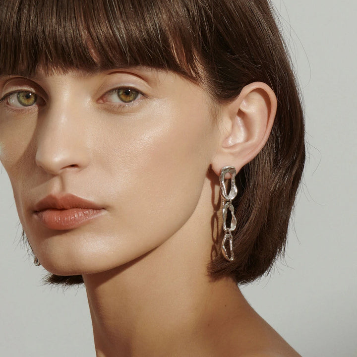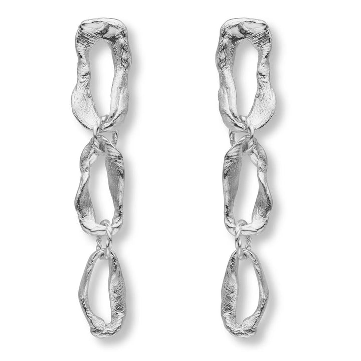 These dangle earrings are made from rhodium-plated recycled silver and feature irregular-shaped links.