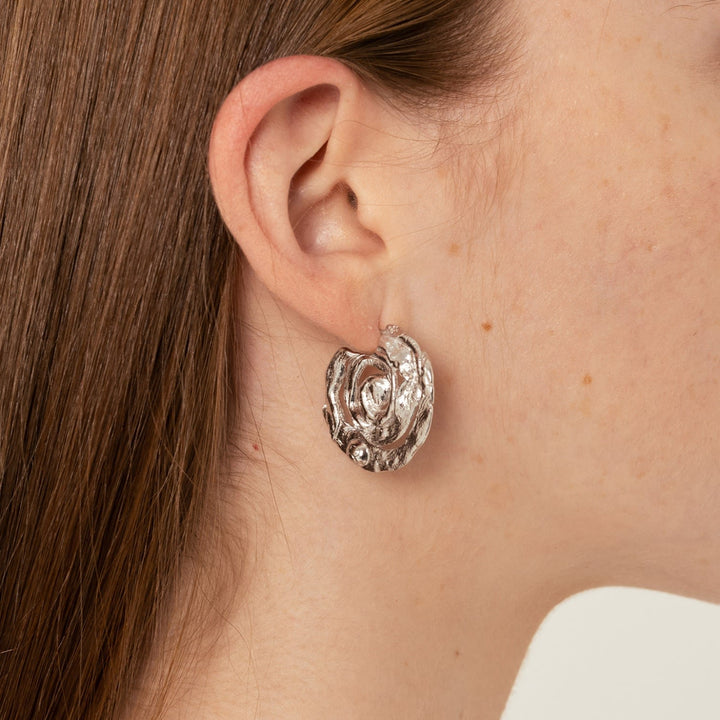 These hoop earrings are handcrafted from recycled sterling silver and are rhodium plated. They are nickel-free.