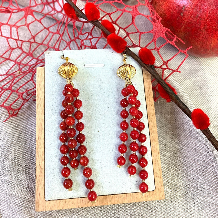 Red Corals Tassels Earrings