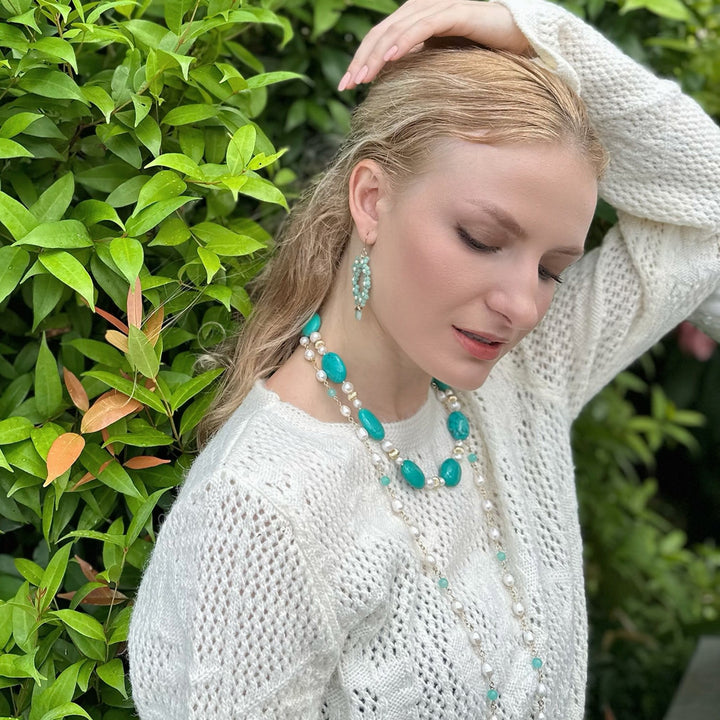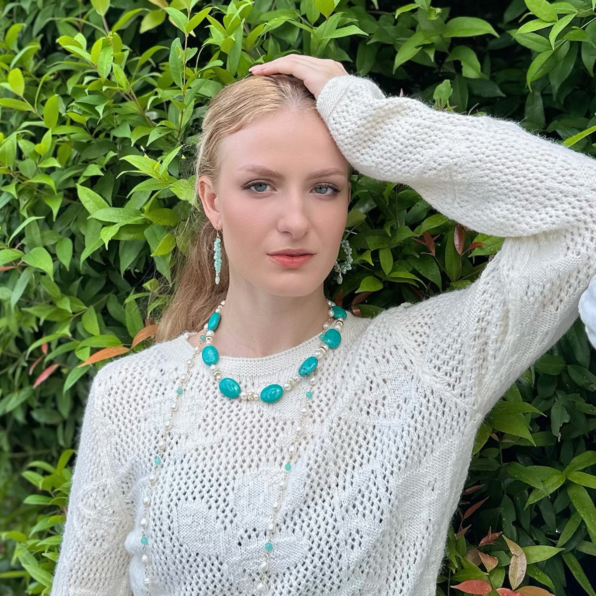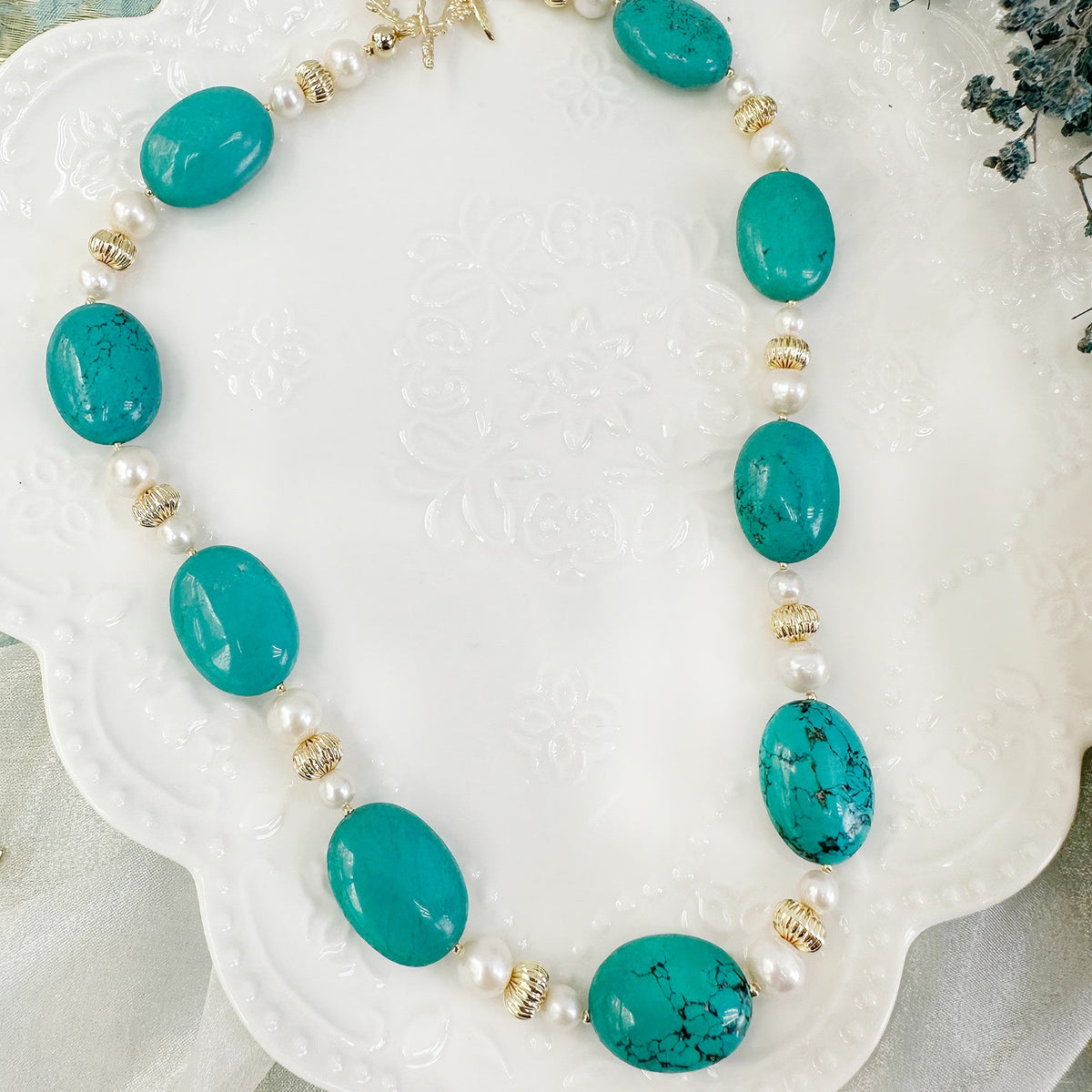 Oval Turquoise & Freshwater Pearls Statement Necklace