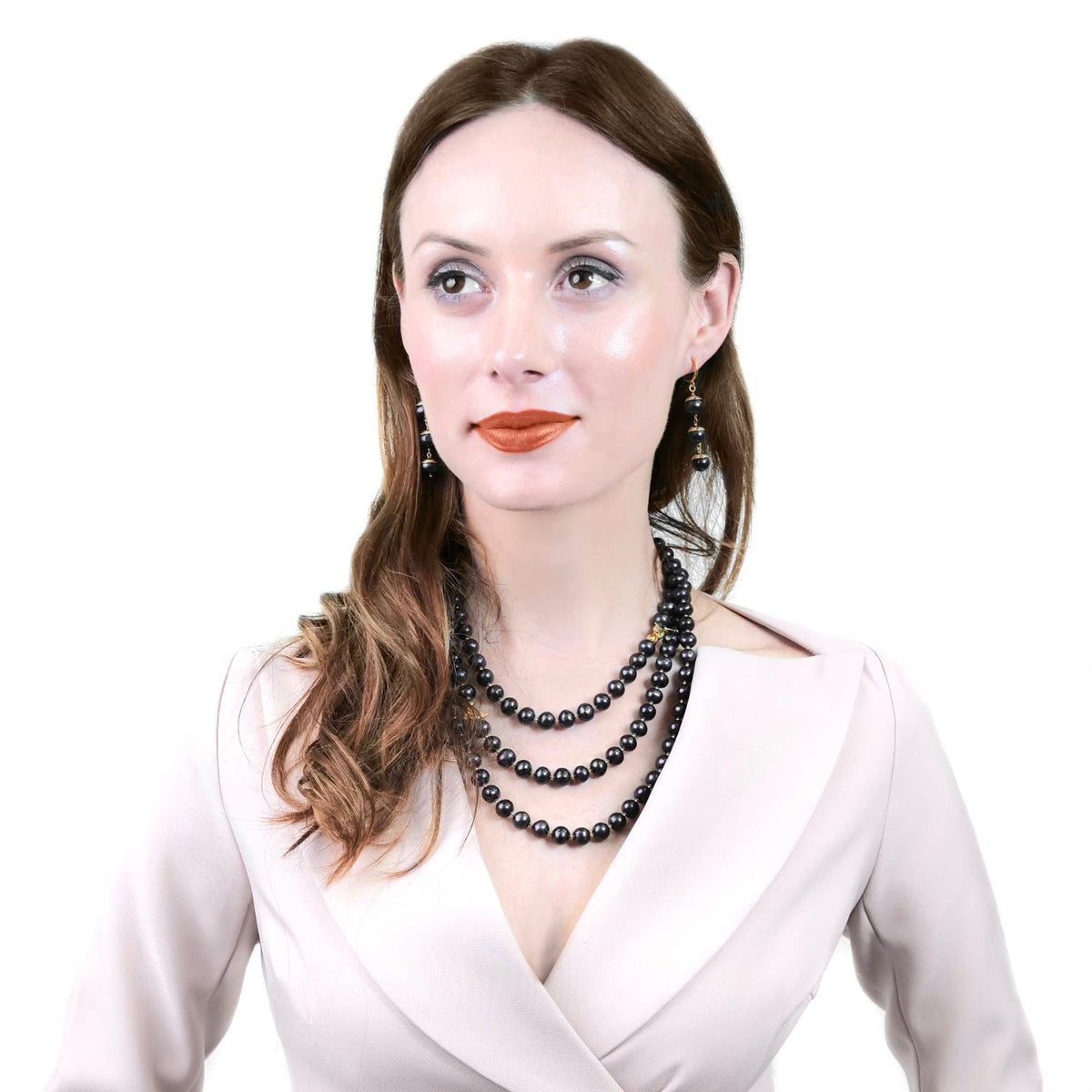 This Round Purple Freshwater Pearls Triple Strands Necklace by Farra is a celebration of natural beauty and timeless grace. The three strands of unique purple pearls offer a luxurious, layered look that can easily transition from a day at the office to a special weekend occasion. This piece is a perfect gift for significant milestones like birthdays or anniversaries, symbolizing pure elegance and enduring charm.